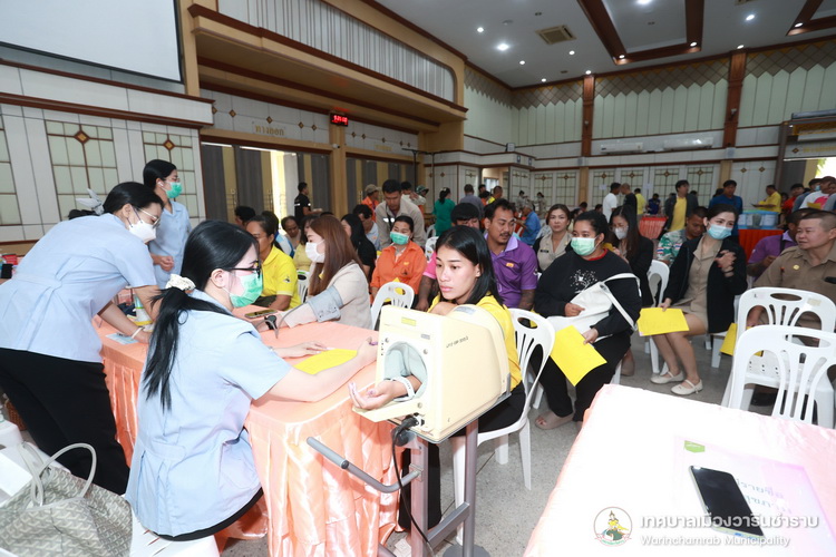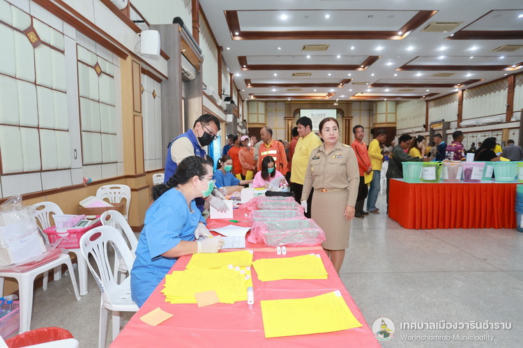 วันที่ 15 กันยายน 2568 เวลา 08.00 น. ณ หอประชุมประชาวาริน เทศบาลเมืองวารินชำราบ ดำเนินการตรวจสุขภาพและตรวจปัสสาวะหาสารเสพติดในร่างกาย พนักงานจ้างทั่วไป พนักงานจ้างตามภารกิจ และพนักงานจ้างเหมาบริการเทศบาลเมืองวารินชำราบ เพื่อป้องกันและแก้ไขปัญหายาเสพติด ตามโครงการ “แนวทางการพัฒนาเมืองน่าอยู่ สำนักงานสีขาวปลอดยาเสพติด” ขาว โดยมีเจ้าหน้าที่ฝ่ายความมั่นคง ที่ทำการปกครองอำเภอวารินชำราบ นำโดย นางอรุณรัตน์ นันทบุรมย์ ปลัดอำเภอฝ่ายความมั่นคงอำเภอวารินชำราบ ร่วมกับเจ้าหน้าที่กองสาธารณสุขและสิ่งแวดล้อม เข้าตรวจหาสารเสพติดในครั้งนี้