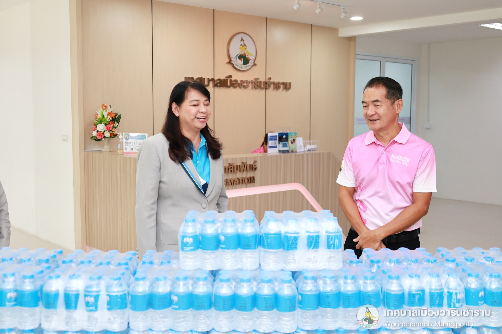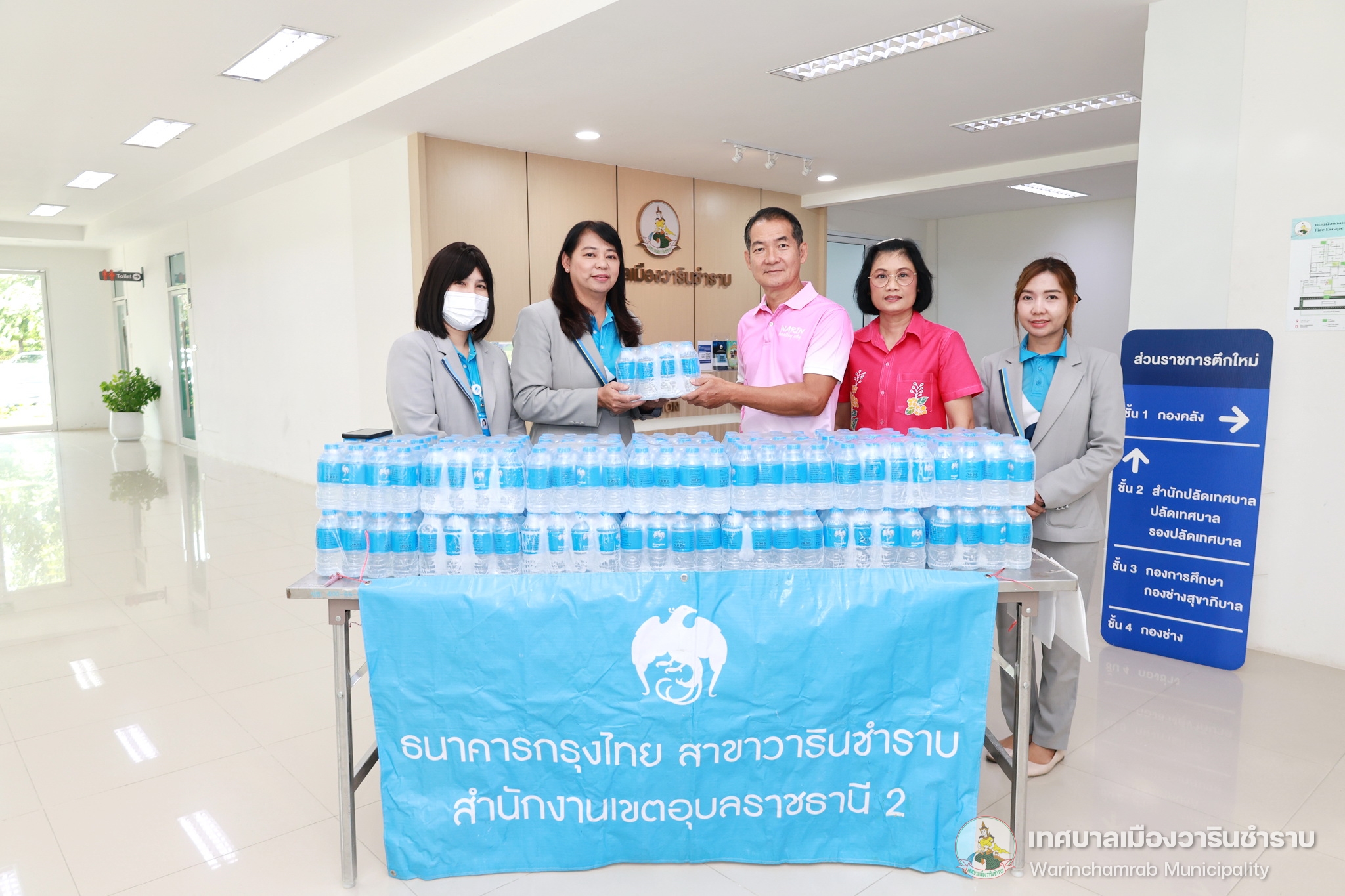 วันที่ 16 กันยายน 2568 นายบุญยง จินตนะกุล รองนายกเทศมนตรี พร้อมด้วย นางรุ่งนภา ทับหนองฮี รองปลัดเทศบาล รักษาราชการแทนปลัดเทศบาล ได้เป็นตัวแทนเทศบาลเมืองวารินชำราบ รับมอบน้ำดื่มจำนวน 30 แพ็ค จากธนาคารกรุงไทย สาขาวารินชำราบ สำนักงานเขตอุบลราชธานี 2 เพื่อสนับสนุนการดำเนินงานของเทศบาลเมืองวารินชำราบ