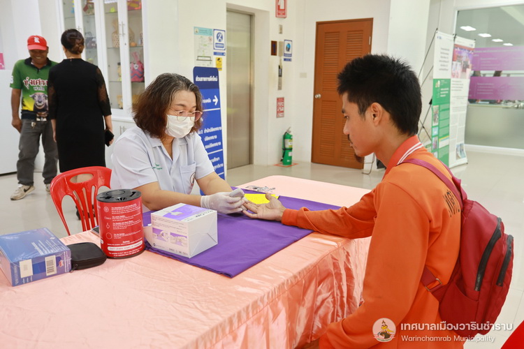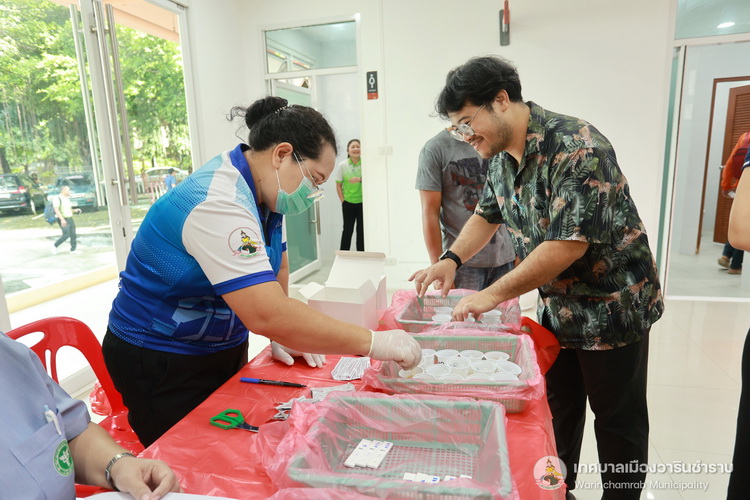 วันที่ 17 กันยายน 2568 เวลา 08.00 น. ณ บริเวณหน้ากองคลัง เทศบาลเมืองวารินชำราบ นำโดยนายจีระชัย ไกรกังวาร นายกเทศมนตรี ได้นำหัวหน้าส่วนการงาน, พนักงานเทศบาล และพนักงานจ้างเทศบาลเมืองวารินชำราบ เข้ารับการตรวจสุขภาพและตรวจหาสารเสพติด ในร่างกาย พนักงานเทศบาลเมืองวารินชำราบ ตามโครงการ “แนวทางการพัฒนาเมืองน่าอยู่ สำนักงานสีขาวปลอดยาเสพติด” โดยมีเจ้าหน้าที่กองสาธารณสุขและสิ่งแวดล้อม เข้าตรวจหาสารเสพติดในครั้งนี้