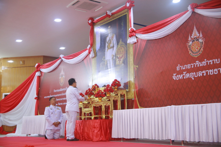 วันที่ 20 กันยายน 2568 เวลา 7.00 น. นายจีระชัย ไกรกังวาร นายกเทศมนตรี ได้มอบหมายให้ นายบุญยง จินตนะกุล รองนายกเทศมนตรี พร้อมด้วย นายอดิสัย อนุพรรณสว่าง ประธานสภาเทศบาล นำสมาชิกสภาเทศบาล และพนักงานเทศบาลเมืองวารินชำราบ ร่วมกิจกรรมเฉลิมพระเกียรติพระบาทสมเด็จพระปรเมนทรมหาอานันทมหิดล พระอัฐมรามาธิบดินทร เนื่องในโอกาสวันพระบรมราชสมภพ ครบ 100 ปี ณ หอประชุมโรงเรียนเทศบาลแสนสุข โดยมี นายอุดมศักดิ์ นวลศิริ นายอำเภอวารินชำราบ เป็นประธานในพิธี นำหน่วยงานราชการ องค์กรปกครองส่วนท้องถิ่น กำนัน ผู้ใหญ่บ้าน และประชาชนในอำเภอวารินชำราบ ประกอบพิธีเจริญพระพุทธมนต์ ทำบุญตักบาตรพระสงฆ์ และพิธีวางพานพุ่มดอกไม้ถวายราชสักการะ เพื่อเป็นการน้อมรำลึกถึงพระมหากรุณาธิคุณที่ทรงมีต่อปวงชนชาวไทย