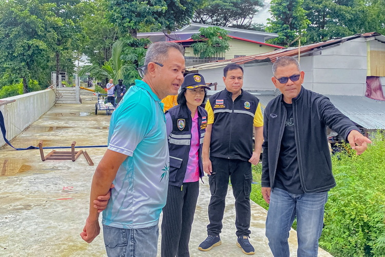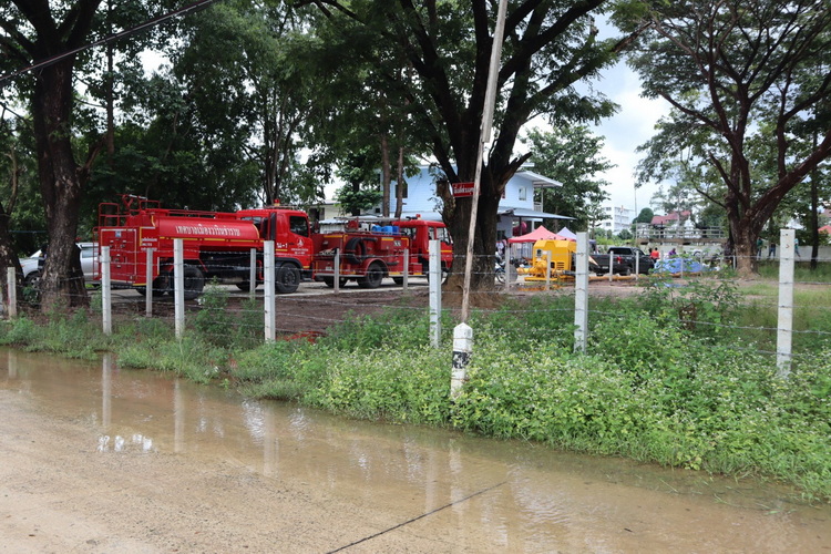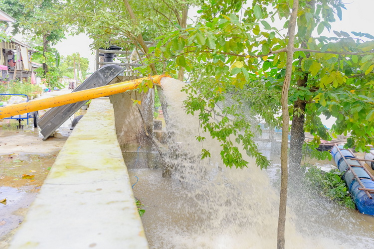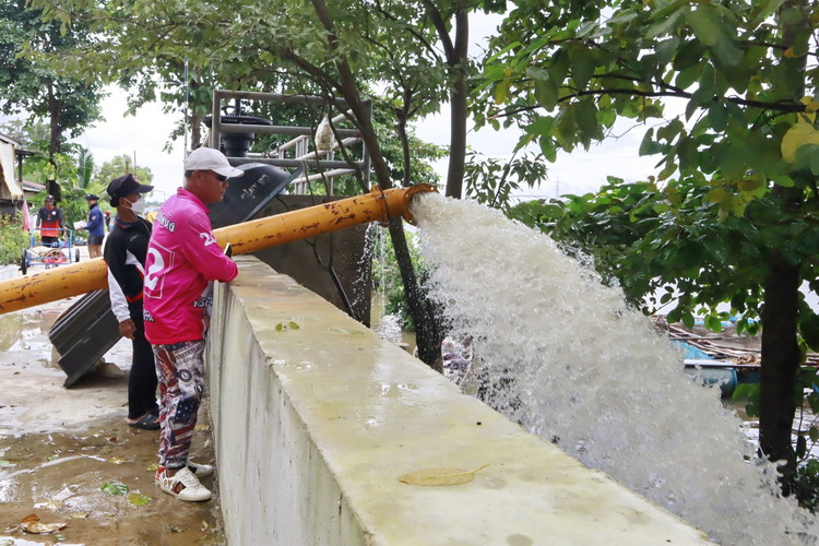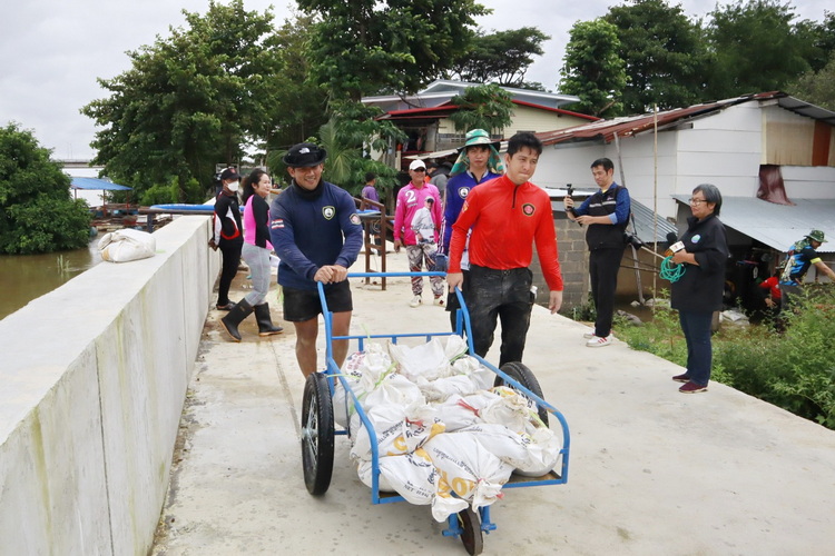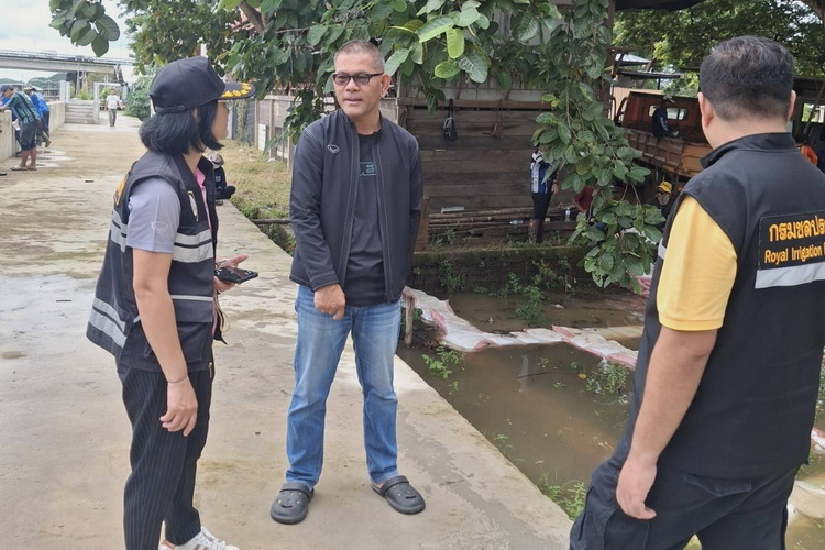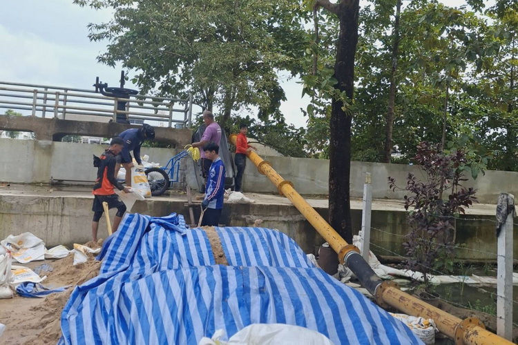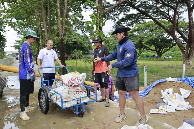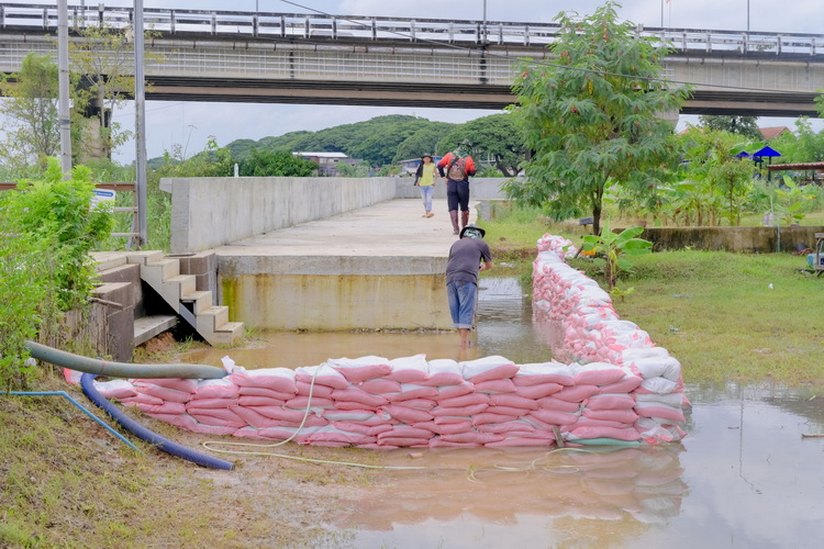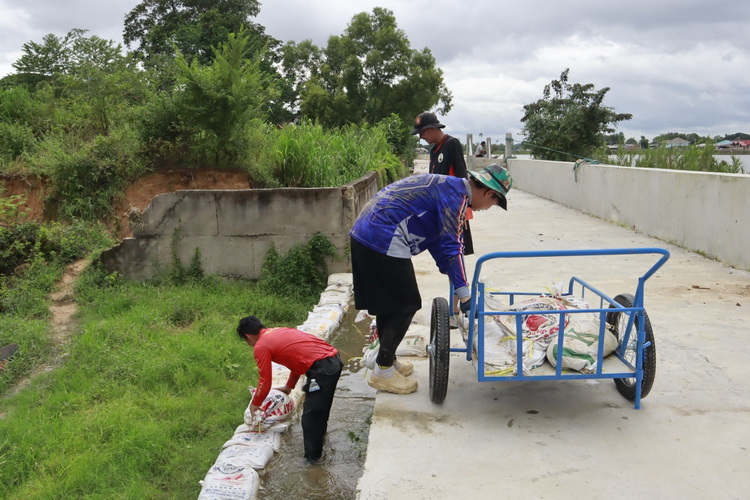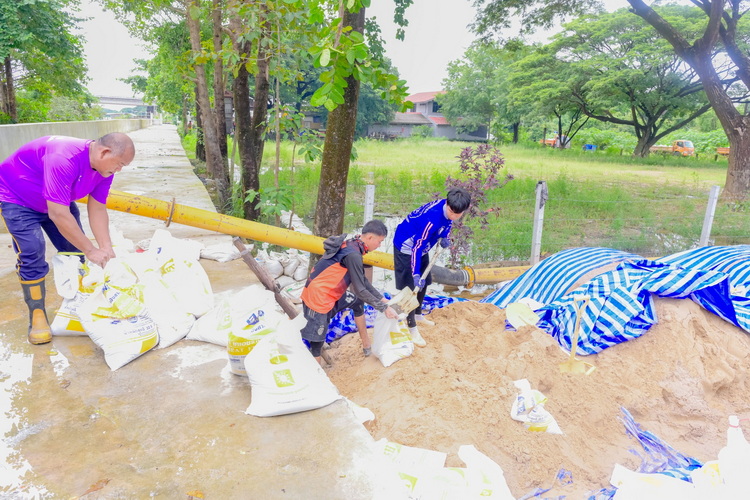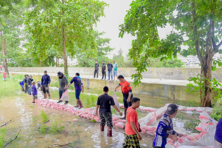 วันที่ 27 กันยายน 2568 นางรุ่งนภา ทับหนองฮี รองปลัดเทศบาล รักษาราชการปลัดเทศบาล พร้อมด้วย เจ้าหน้าที่ผ่ายป้องกันและบรรเทาสาธารณภัย เทศบาลเมืองวารินชำราบ ร่วมกับ เจ้าหน้าที่สำนักงานชลประทานที่ 7 ได้ลงพื้นที่ตรวจติดตามสถานการณ์น้ำบริเวณประตูระบายน้ำชุมชนท่ากอไผ่ เนื่องจากน้ำในแม่น้ำมูลมีระดับสูงขึ้นอย่างต่อเนื่อง โดยล้นระดับแนวตลิ่งฝั่งอำเภอวารินชำราบ ซึ่งเริ่มมีน้ำบางส่วนไหลซึมเข้ามาในพื้นที่ชุมชน แต่ระดับน้ำภายนอกยังคงต่ำกว่าแนวผนังกั้นน้ำ จึงได้ดำเนินการวางแนวกระสอบทรายบริเวณริมแนวผนังกั้นน้ำป้องกันพื้นที่ชั้นใน และเดินเครื่องสูบน้ำขนาด 10 นิ้ว จำนวน 1 เครื่อง อัตราการสูบ 0.25 ลบ.ม./วินาที บริเวณประตูระบายน้ำชุมชนท่ากอไผ่ เพื่อเร่งระบายน้ำออกจากชุมชนและบรรเทาผลกระทบและความเดือดร้อนที่อาจจะเกิดขึ้นกับพี่น้องประชาชนในพื้นที่ให้ได้มากที่สุด