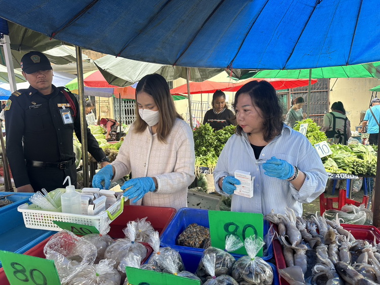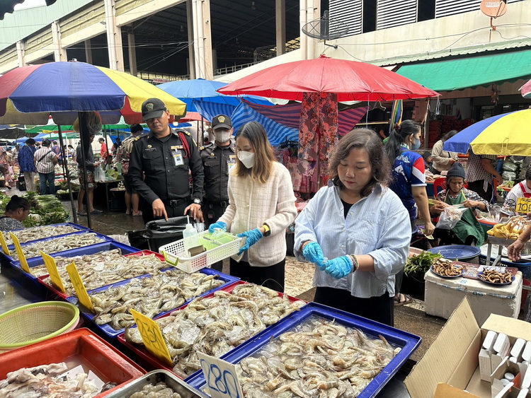 เมื่อวันที่ 19 กันยายน 2568 เวลา 08.00 น. งานสุขาภิบาลและอนามัยสิ่งแวดล้อม กองสาธารณสุขและสิ่งแวดล้อม เทศบาลเมืองวารินชำราบ นำโดยนางสาวศิริมาส สิทธิโชค นักวิชาการสุขาภิบาลปฏิบัติการ , นางสาวชนัญญา ศุภลักษณ์ นักวิชาการสุขาภิบาลปฏิบัติการ และเจ้าหน้าที่เทศกิจ ดำเนินการออกตรวจเฝ้าระวังการใส่สารฟอร์มาลินในอาหารทะเล เพื่อเป็นการเฝ้าระวังและตรวจสอบคุณภาพความปลอดภัยของอาหารและร้านจำหน่ายอาหารทะเลสด ภายในตลาดสดเทศบาลแห่งที่ 1 เทศบาลเมืองวารินชำราบ