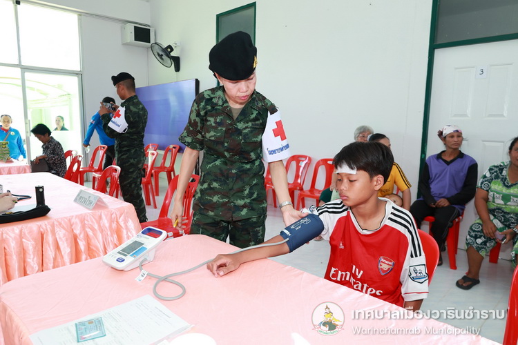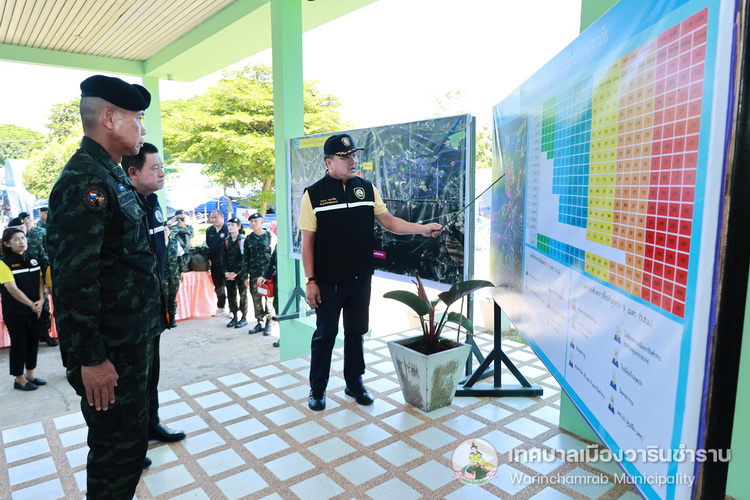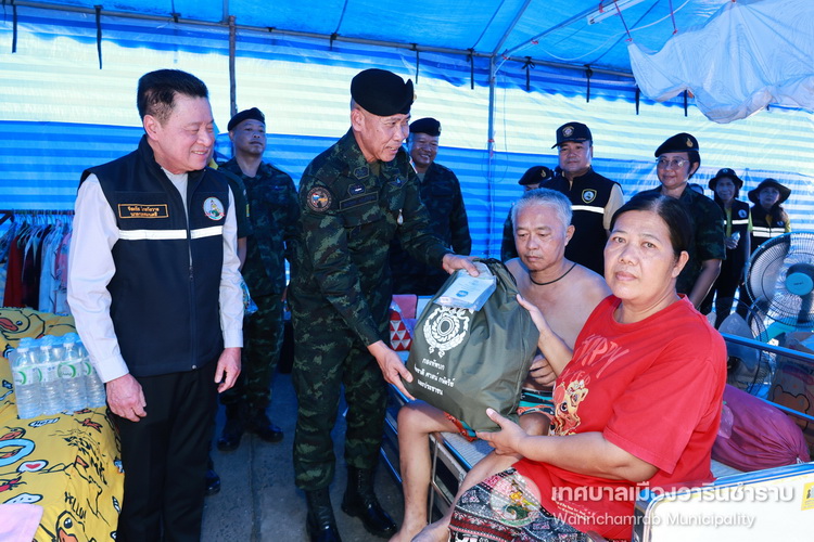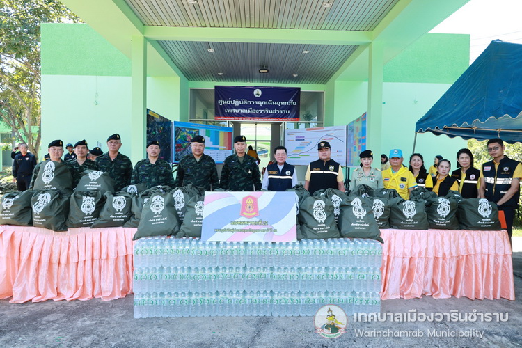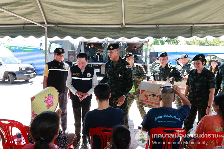 วันที่ 10 ตุลาคม 2568 เวลา 10.00 น. ณ ศูนย์ปฏิบัติการฉุกเฉินอุทกภัย โครงการปรับปรุงคุณภาพน้ำ เทศบาลเมืองวารินชำราบ นำโดยนายจีระชัย ไกรกังวาร นายกเทศมนตรีเมืองวารินชำราบ และหัวหน้าส่วนราชการ ให้การต้อนรับพล.ต.ธนกฤต พันธุ์รอด ผบ.มทบ.22 และคณะ ซึ่งได้เดินทางมาตรวจเยี่ยมให้กำลังใจผู้ประสบอุทกภัย ภายในศูนย์พักพิงชั่วคราวโครงการปรับปรุงคุณภาพน้ำ พร้อมทั้งจัดชุดแพทย์เคลื่อนที่หมอเดินเท้า ชุดช่างตัดผม ดนตรีสร้างสุข และจัดสิ่งอุปโภคบริโภค มามอบให้ประชาชนผู้ประสบอุทกภัย จำนวน 51 ชุด เพื่อเป็นการบรรเทาความเดือดร้อน และให้กำลังใจแก่ผู้ประสบอุทกภัย