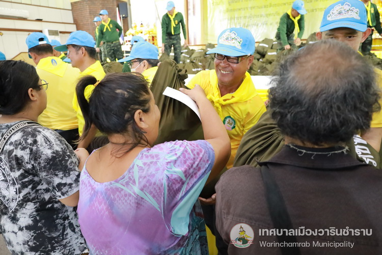 วันที่ 10 ตุลาคม 2568 เวลา 13.00 น. ณ หอประชุมประชาวาริน เทศบาลเมืองวารินชำราบ นำโดยนายจีระชัย ไกรกังวาร นายกเทศมนตรีเมืองวารินชำราบ, รองนายกเทศมนตรี , สมาชิกสภาเทศบาลเมืองวารินชำราบ , หัวหน้าส่วนการงาน ร่วมพิธีมอบถุงยังชีพพระราชทาน จำนวน 603 ชุด โดยมี นายอุดมศักดิ์ นวลศิริ นายอำเภอวารินชำราบ เป็นประธานในพิธี โดยประธานในพิธีกล่าวถึงพระมหากรุณาธิคุณของพระบาทสมเด็จพระปรเมนทรรามาธิบดีศรีสินทรมหาวชิราลงกรณ พระวชิรเกล้าเจ้าอยู่หัว ที่พระราชทานถุงยังชีพให้แก่ประชาชนผู้ประสบอุทกภัย เพื่อเป็นขวัญกำลังใจและบรรเทาความเดือดร้อนในเบื้องต้น
