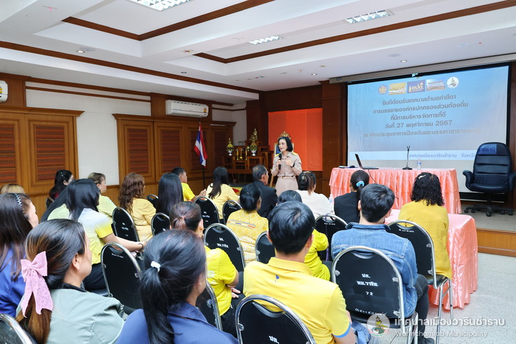 วันที่ 27 พฤศจิกายน 2567 เวลา 09.00 น ณ ห้องประชุมประทุมเทพภักดี 2 นายจีระชัย ไกรกังวาร นายกเทศมนตรี ได้มอบหมายให้ นายณรงชัย ประสิทธิ์ภูริปรีชา รองนายกเทศมนตรี พร้อมด้วยนางรุ่งนภา ทับหนองฮี หัวหน้าสำนักปลัดเทศบาล รักษาราชการแทนปลัดเทศบาล ให้การต้อนรับคณะผู้บริหาร หัวหน้าส่วนราชการ และเจ้าหน้าที่จากจากเทศบาลตำบลท่าสีดา อำเภอหนองพอก จังหวัดร้อยเอ็ด นำโดยนายบรรจง วรรณทอง นายกเทศมนตรีตำบลท่าสีดา ซึ่งได้นำ คณะผู้บริหาร หัวหน้าส่วนการงาน และเจ้าหน้าที่ เข้าศึกษาดูงาน เรื่อง การบริหารจัดการที่ดี เพื่อเพิ่มประสิทธิภาพในด้านการซึ่งด้านการบริหารจัดการที่ดีของเทศบาลเมืองวารินชำราบ เพื่อเป็นแนวทางและแลกเปลี่ยนประสบการณ์ในการบริหารงานท้องถิ่น