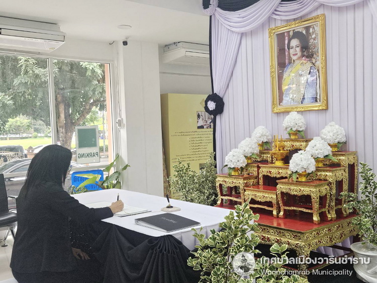 วันที่ 29 ตุลาคม 2568 เวลา 14.00 น. ณ อาคารสำนักงานใหม่ เทศบาลเมืองวารินชำราบ นำโดยนายจีระชัย ไกรกังวาร นายกเทศมนตรีเมืองวารินชำราบ พร้อมด้วยหัวหน้าส่วนการงาน และพนักงานเทศบาลเมืองวารินชำราบ ได้ลงนามแสดงความไว้อาลัย สมเด็จพระนางเจ้าสิริกิติ์ พระบรมราชินีนาถ พระบรมราชชนนีพันปีหลวง ซึ่งได้เสด็จสวรรคตเมื่อวันที่ 24 ตุลาคม พ.ศ.2568 เพื่อเป็นการถวายความอาลัย ด้วยความสำนึกในพระมหากรุณาธิคุณเป็นล้นพ้นอันหาที่สุดมิได้ ที่พระองค์ทรงอุทิศพระวรกายปฏิบัติพระราชกรณียกิจนานัปการ เพื่อประโยชน์สุขของปวงชนชาวไทย