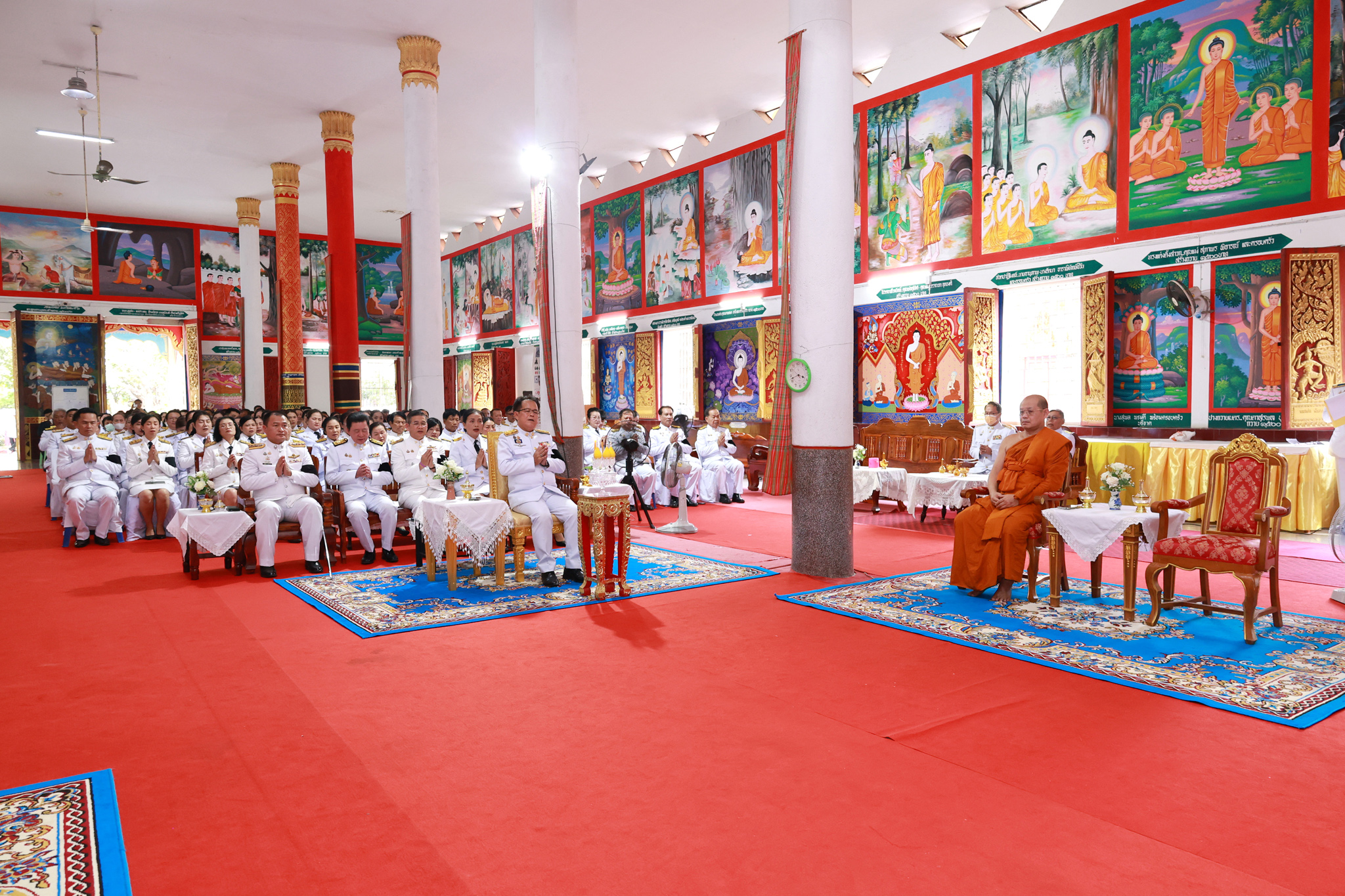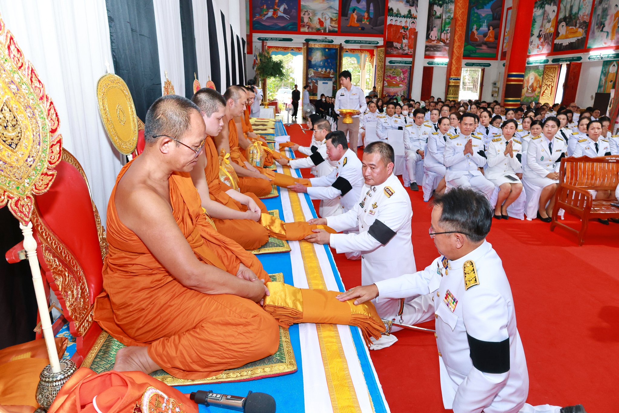 ในการนี้ ประธานในพิธีได้จุดธูปเทียนบูชาพระรัตนตรัย และถวายเครื่องทองน้อยสักการะเบื้องหน้าพระฉายาลักษณ์ สมเด็จพระนางเจ้าสิริกิติ์ พระบรมราชินีนาถ พระบรมราชชนนีพันปีหลวง จากนั้นพระสงฆ์สวดพระพุทธมนต์ และประธานในพิธีได้ทอดผ้าบังสุกุล พร้อมกรวดน้ำอุทิศถวายเป็นพระราชกุศล และการแสดงธรรมเทศนาโดย พระศรีรัตโนบล รองเจ้าคณะจังหวัดอุบลราชธานี เจ้าอาวาสวัดวารินทราราม