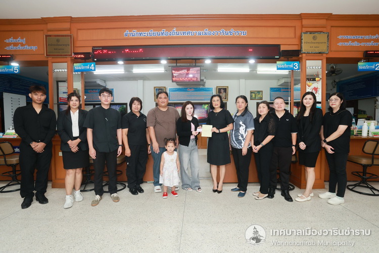 วันที่ 5 พฤศจิกายน 2568 เวลา 10.00 น. นางรุ่งนภา ทับหนองฮี รองปลัดเทศบาล รักษาราชการแทนปลัดเทศบาล ในฐานะนายทะเบียนท้องถิ่นเทศบาลเมืองวารินชำราบ พร้อมด้วย เจ้าหน้าที่ฝ่ายทะเบียนราษฎรและบัตรประจำตัวประชาชน ได้มอบบัตรประจำตัวคนซึ่งไม่มีสัญชาติไทย แก่บุคคลซึ่งได้มีคำร้องขอมีบัตรครั้งแรก จำนวน 1 ราย เนื่องจากเพิ่มชื่อและรายการบุคคลเข้าในทะเบียนบ้าน (ทร.13) ตามระเบียบสำนักทะเบียนกลางว่าด้วยการจัดทำทะเบียนราษฎร พ.ศ. 2535 แก้ไขเพิ่มเติมถึง (ฉบับที่ 8) พ.ศ. 2564 กรณีคนต่างด้าวที่มีหนังสือเดินทางเข้ามาในประเทศไทย ซึ่งระยะเวลาการอนุญาตให้อยู่ในประเทศไทยยังไม่สิ้นสุด มีความประสงค์ขอเพิ่มชื่อในทะเบียนบ้าน (ทร.13)