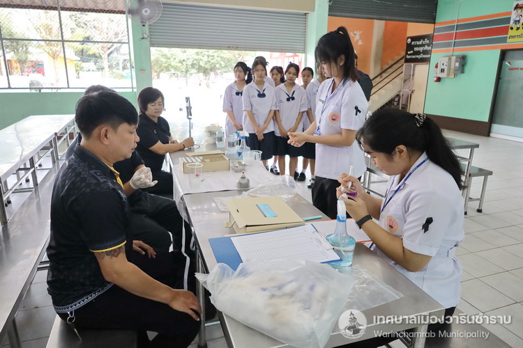 วันที่ 12 พฤศจิกายน 2568 เวลา 09.00 น. กองสาธารณสุขและสิ่งแวดล้อม เทศบาลเมืองวารินชำราบ นำโดยนางสาวชนัญญา ศุภลักษณ์ นักวิชาการสุขาภิบาลปฏิบัติการ ,นางสาวศิริมาส สิทธิโชติ นักวิชาการสาธารณสุขปฏิบัติการ และเจ้าหน้าที่กองสาธารณสุขและสิ่งแวดล้อม ลงพื้นที่โรงเรียนเทศบาลบ้านสุขสำราญ ในการตรวจสุขาภิบาลอาหารของสถานศึกษาในสังกัดเทศบาลเมืองวารินชำราบ รับการเปิดภาคเรียนที่ 2 ปีการศึกษา 2568 ตามมาตรการเฝ้าระวังคุณภาพอาหารในสถานศึกษาให้มีความสะอาด ปลอดภัย ปลอดโรค และได้มาตรฐานสุขาภิบาลอาหารตามกฏกระทรวงสาธารณสุขลักษณะสถานที่จำหน่ายอาหาร พ.ศ.2561 ร่วมถึงด้านสุขอนามัยสิ่งแวดล้อมของโรงอาหาร เพื่อสร้างความมั่นใจแก่ผู้ปกครองและนักเรียนที่มาใช้บริการโรงอาหารของทางโรงเรียน