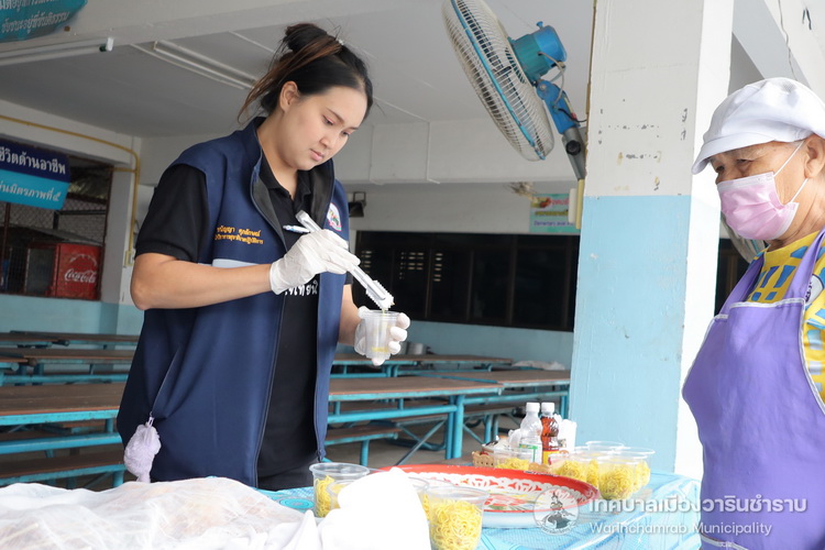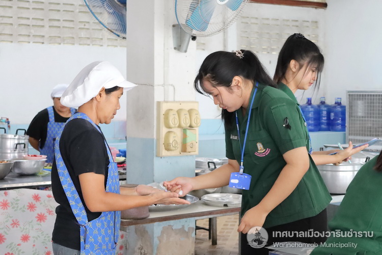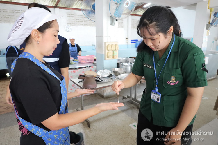 วันที่ 13 พฤศจิกายน 2568 เวลา 09.00 น. กองสาธารณสุขและสิ่งแวดล้อม เทศบาลเมืองวารินชำราบ นำโดยนางสาวชนัญญา ศุภลักษณ์ นักวิชาการสุขาภิบาลปฏิบัติการ ,นางสาวศิริมาส สิทธิโชค นักวิชาการสาธารณสุขปฏิบัติการ และเจ้าหน้าที่กองสาธารณสุขและสิ่งแวดล้อม ลงพื้นที่โรงเรียนเทศบาลบ้านหนองตาโผ่น (มิตรภาพที่ 5) ในการตรวจสุขาภิบาลอาหารของสถานศึกษาในสังกัดเทศบาลเมืองวารินชำราบ รับการเปิดภาคเรียนที่ 2 ปีการศึกษา 2568 ตามมาตรการเฝ้าระวังคุณภาพอาหารในสถานศึกษาให้มีความสะอาด ปลอดภัย ปลอดโรค และได้มาตรฐานสุขาภิบาลอาหารตามกฏกระทรวงสาธารณสุขลักษณะสถานที่จำหน่ายอาหาร พ.ศ.2561 ร่วมถึงด้านสุขอนามัยสิ่งแวดล้อมของโรงอาหาร เพื่อสร้างความมั่นใจแก่ผู้ปกครองและนักเรียนที่มาใช้บริการโรงอาหารของทางโรงเรียน