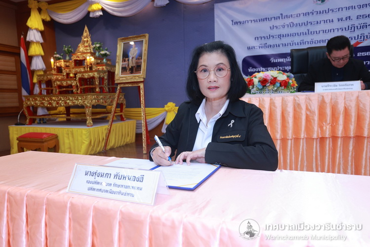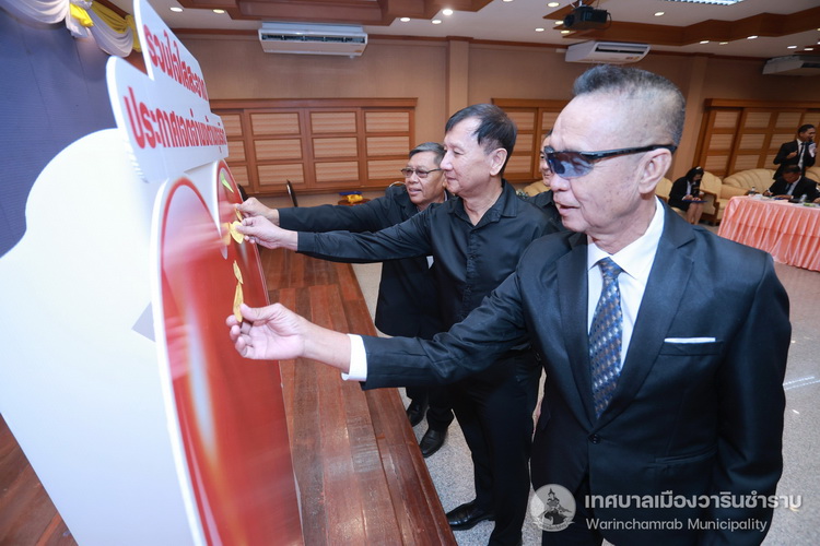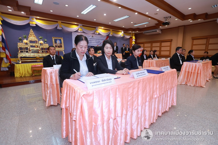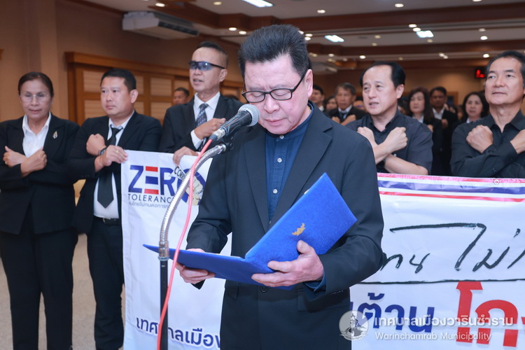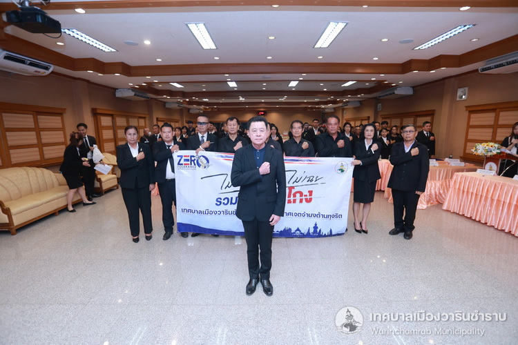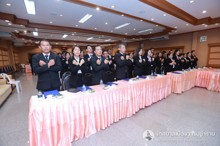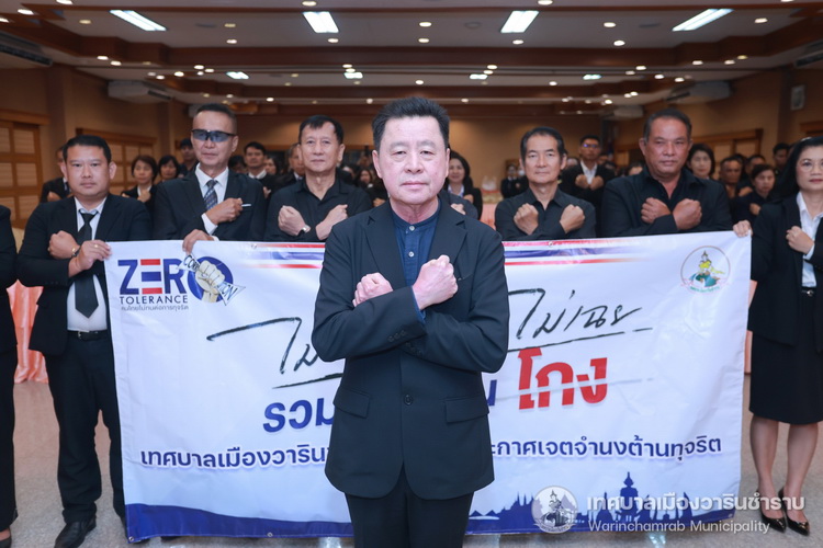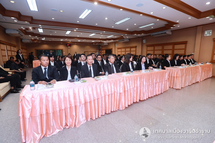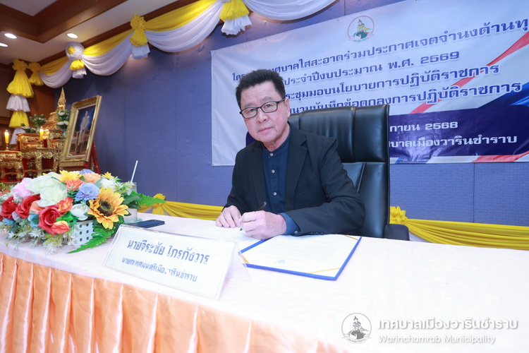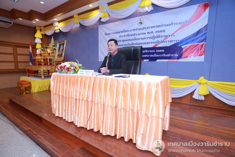 วันที่ 13 พฤศจิกายน 2568 เวลา 09.30 น. ณ ห้องประชุมประทุมเทพภักดี 1 เทศบาลเมืองวารินชำราบ ได้จัดโครงการเทศบาลใสสะอาดร่วมประกาศเจตจำนงต้านทุจริต ประจำปีงบประมาณ พ.ศ.2569 การประชุมมอบนโยบายการปฏิบัติราชการ พิธีลงนามในบันทึกข้อตกลงการปฏิบัติราชการ และกิจกรรมประกาศเจตนารมณ์การต่อต้านการทุจริตและประพฤติมิชอบ โดยมีนายจีระชัย ไกรกังวาร นายกเทศมนตรี เป็นประธานในพิธี สำหรับการประชุมในครั้งนี้ นายจีระชัย ไกรกังวาร นายกเทศมนตรี ได้มอบนโยบายการปฏิบัติราชการ แก่หัวหน้าส่วนการงาน, พนักงานเทศบาล พร้อมด้วยคณะผู้บริหารสถานศึกษา เพื่อสร้างความรู้ความเข้าใจในนโยบายและหลักการดำเนินงานของเทศบาล อีกทั้งยังเป็นการปลูกฝังสร้างจิตสำนึกแก่พนักงานให้มีความรับผิดชอบในหน้าที่ ตามที่ได้รับมอบหมาย รวมถึงยังเป็นการส่งเสริมและสร้างขวัญกำลังใจที่ดีในการทำงาน พร้อมกันนี้นายจีระชัย ไกรกังวาร นายกเทศมนตรี ร่วมพิธีลงนามในบันทึกข้อตกลงการปฏิบัติราชการ และประกาศเจตนารมณ์นโยบายไม่รับของขวัญและของกำนัลทุกชนิดจากการปฏิบัติหน้าที่ (No Gift Policy) และประกาศเจตจำนงสุจริตในการบริหารงาน ตามนโยบายคุณธรรมและความโปร่งใส เพื่อเป็นมาตรฐานแนวทางปฏิบัติ และค่านิยมสำหรับข้าราชการและบุคลากรขององค์กร ในการดำเนินงานตามภารกิจด้วยความโปร่งใส ซื่อสัตย์สุจริต มีคุณธรรม ปราศจากการทุจริต รวมทั้งเน้นยำให้บุคลากรในสังกัดเทศบาลเมืองวาริน ถือปฏิบัติตามประกาศเจตนารมณ์นโยบายไม่รับของขวัญและของกำนัลทุกชนิดจากการปฏิบัติหน้าที่ (No Gift Policy) และการดำเนินการตามประมวลจริยธรรม อย่างเคร่งครัด และให้นำหลักเกณฑ์ตามประมวลจริยธรรมที่เกี่ยวข้องไปใช้ในการปฏิบัติตน และรักษาคุณงามความดีที่เจ้าหน้าที่ของรัฐต้องยึดถือปฏิบัติ รวมถึงแนวทางการปฏิบัติตนทางจริยธรรม (Do’s & Don’ts) ข้อควรทำ ข้อไม่ควรทำ ไปใช้ในการปฏิบัติงาน