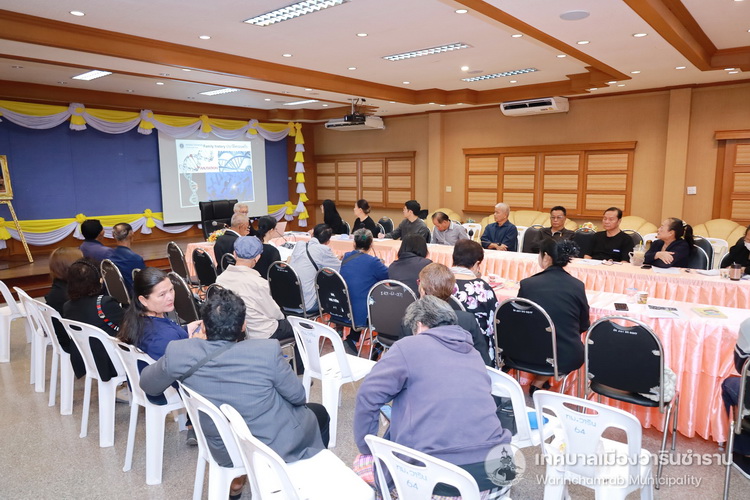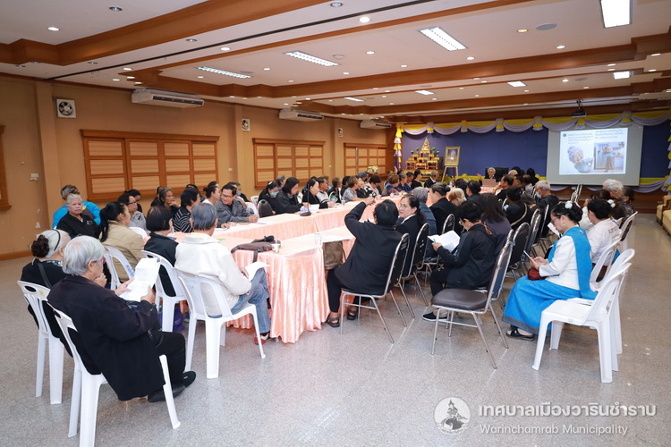 วันที่ 24 พฤศจิกายน 2568 เวลา 09.00 น. ณ ห้องประชุมประทุมเทพภักดี 1 กองสาธารณสุขและสิ่งแวดล้อม เทศบาลเมืองวารินชำราบ นำโดยนางพฤกษา ตั้งกิจวนิชกุล ผู้อำนวยการกองสาธารณสุขและสิ่งแวดล้อม ได้จัดโครงการส่งเสริมสุขภาพแลพัฒนาผู้สูงวัย ประจำปี 2569 เพื่อประชุมชี้แจงการดำเนินงานชมรมผู้สูงอายุแนวทางการขับเคลื่อนชมรมผู้สูงอายุและการขับเคลื่อนระบบรองรับสังคมสูงอายุให้ครอบคลุมทั้ง 5 มิติ ชมรมผู้สูงอายุให้ได้มีโอกาสแลกเปลี่ยนเรียนรู้ชมรมผู้สูงอายุด้านสุขภาพและมีคุณภาพชีวิตที่ดีสามารถอยู่รวมกับสังคมได้อย่างมีความสุข โดยได้รับเกียรติจาก รองศาสตรจารย์ ดร. วิภาวรรณ ตั้งนิพนธ์ ศูนย์วิจัยประสาทวิทยาศาสตร์ สถาบันชีววิทยาศาสตร์โมเลกุล มหาวิทยาลัยมหิดล มาเป็นวิทยากรให้ความรู้ในเรื่องอความรู้พื้นฐาน เพื่อการป้องกันและรักษาโรคสมองเสื่อม Alzheimer แก่เข้ารับการอบรมครั้งนี้
