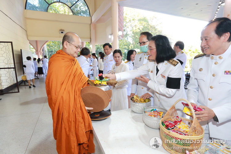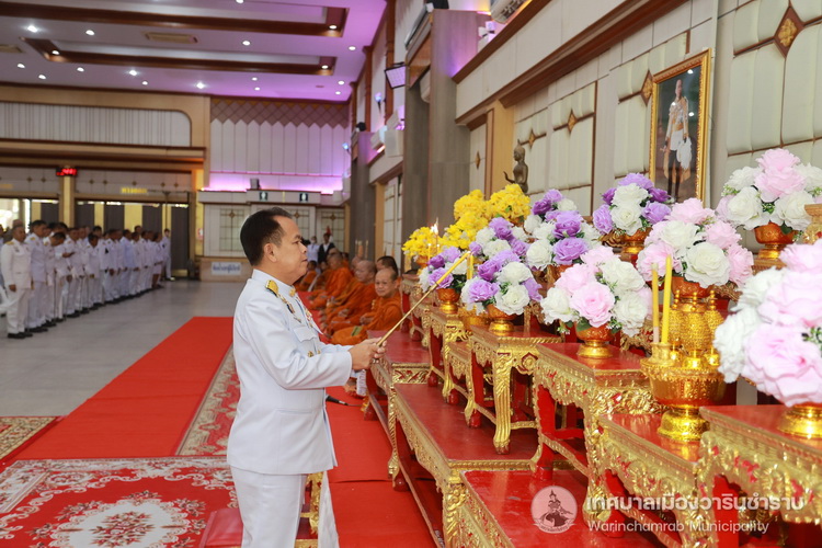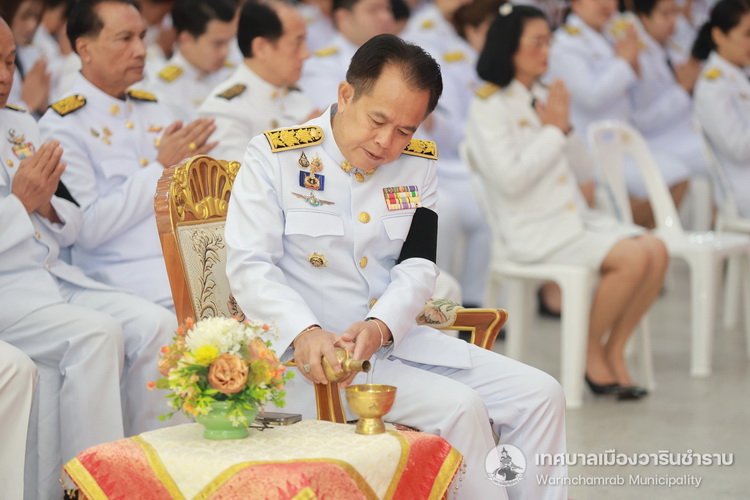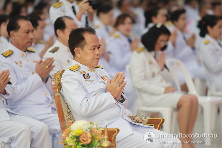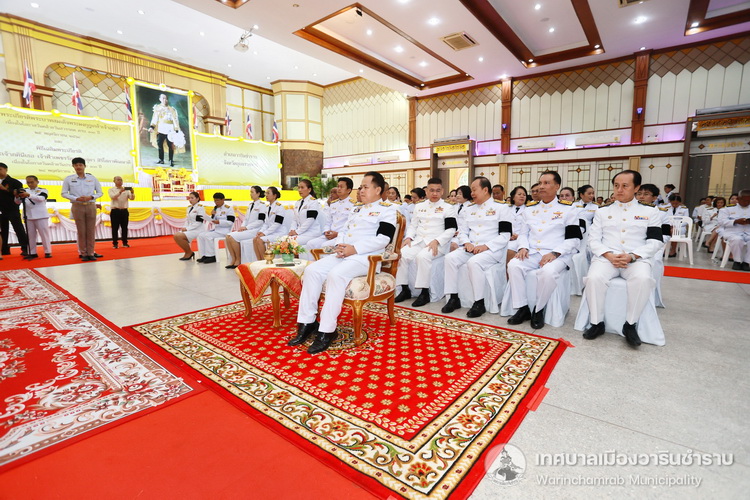 วันที่ 25 พฤศจิกายน 2568 เวลา 07.00 น. ณ หอประชุมประชาวาริน นายจีระชัย ไกรกังวาร นายกเทศมนตรี ได้มอบหมายให้นายณรงชัย ประสิทธิ์ภูริปรีชา รองนายกเทศมนตรี พร้อมด้วยสมาชิกสภาเทศบาล ,หัวหน้าส่วนราชการ และพนักงานเทศบาลเมืองวารินชำราบ ร่วมร่วมพิธีวางพวงมาลาถวายราชสักการะพระบาทสมเด็จพระมงกุฎเกล้าเจ้าอยู่หัว เนื่องในโอกาสวันคล้ายวันสวรรคตครบ 100 ปี ร่วมกับหน่วยงานส่วนต่างๆ และประชาชนในอำเภอวารินชำราบ โดยมีนายอุดมศักดิ์ นวลศิริ นายอำเภอวารินชำราบ เป็นประธานในพิธี โดยกิจกรรมในพิธีได้มีพิธีทำบุญตักบาตรเพื่อถวายเป็นพระราชกุศล จากนั้นได้มีพิธีวางพวงมาลาเบื้องหน้าพระบรมฉายาลักษณ์ของพระบาทสมเด็จพระมงกุฏเกล้าเจ้าอยู่หัว เพื่อเป็นการแสดงออกถึงความจงรักภักดี และน้อมรำลึกถึงพระมหากรุณาธิคุณอย่างหาที่สุดมิได้