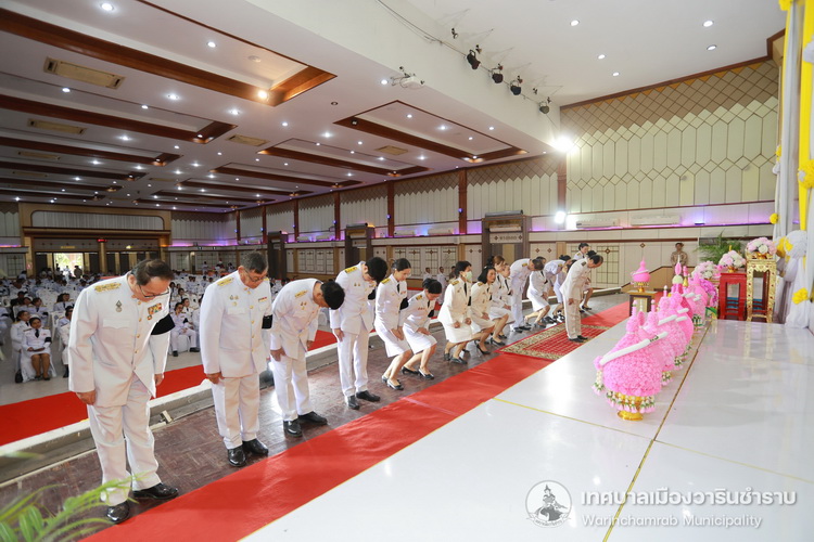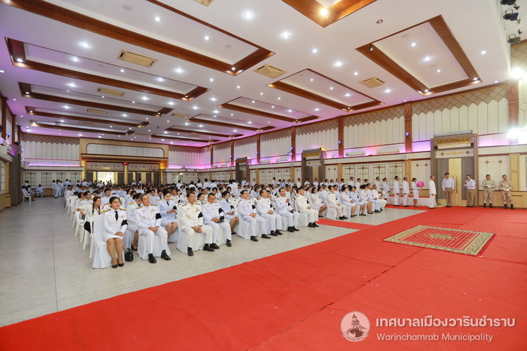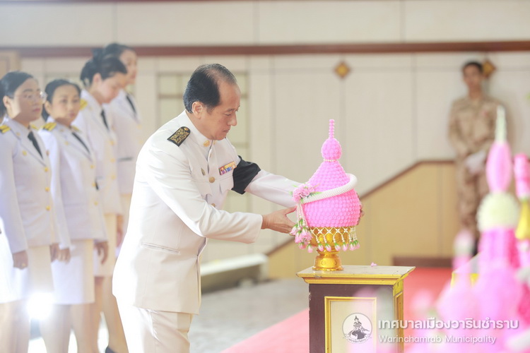 วันที่ 25 พฤศจิกายน 2568 เวลา 08.30 น. นายจีระชัย ไกรกังวาร นายกเทศมนตรี ได้มอบหมายให้ นายณรงชัย ประสิทธิ์ภูริปรีชา รองนายกเทศมนตรี พร้อมด้วยสมาชิกสภาเทศบาล และพนักงานเทศบาลเมืองวารินชำราบ ร่วมกิจกรรมเฉลิมพระเกียรติสมเด็จพระเจ้าภคินีเธอ เจ้าฟ้าเพชรรัตนราชสุดา สิริโสภาพัณณวดี เนื่องในโอกาสวันประสูติ ครบ 100 ปี ณ หอประชุมประชาวาริน โดยมีนายอุดมศักดิ์ นวลศิริ นายอำเภอวารินชำราบ เป็นประธานในพิธี นำหน่วยงานราชการ องค์กรปกครองส่วนท้องถิ่น กำนัน ผู้ใหญ่บ้าน และประชาชนในอำเภอวารินชำราบ ประกอบพิธีวางพานพุ่มดอกไม้ถวายราชสักการะ เพื่อเป็นการน้อมรำลึกถึงพระมหากรุณาธิคุณที่ทรงมีต่อปวงชนชาวไทย