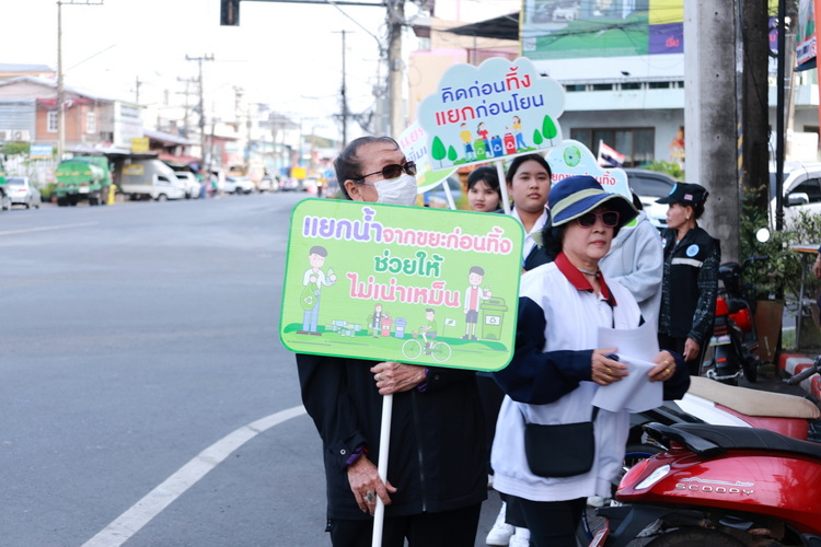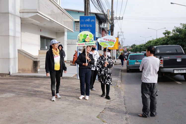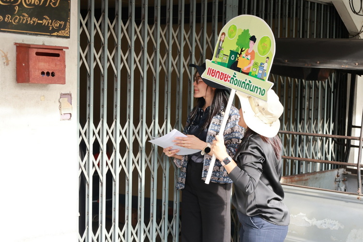 วันที่ 27 พฤศจิกายน 2568 เวลา 15.00 น. นางพีระพิชญ์ รวมธรรม หัวหน้าฝ่ายบริหารงานสาธารณสุข นำเจ้าหน้าที่กองสาธารณสุขฯ และสมาชิกอาสาสมัครท้องถิ่นรักษ์โลก (อถล.) เทศบาลเมืองวารินชำราบ ลงพื้นที่ประชาสัมพันธ์โครงการถนนปลอดถังขยะ แบบเคาะประตูบ้าน ในพื้นที่นำร่องโครงการฯ ได้แก่ ถนนสถิตย์นิมานกาลบริเวณ หน้าโรงเรียนวิจิตราพิทยา – ห้าแยกไฟแดง(แยกจ่าเฉย) และถนนศรีสะเกษ 1 เริ่มสามแยกศาลเจ้า ถึงแยกวัดแสนสำราญ เพื่อเป็นการประชาสัมพันธ์ชี้แจงให้ประชาชนที่อาศัย หรือประกอบกิจการในบริเวณดังกล่าวได้รับทราบถึงวัตถุประสงค์ของโครงการฯ รวมถึงเพื่อสร้างความเข้าใจแก่ประชาชนในขั้นตอนการทิ้งขยะ และการจัดเก็บขยะของเทศบาล