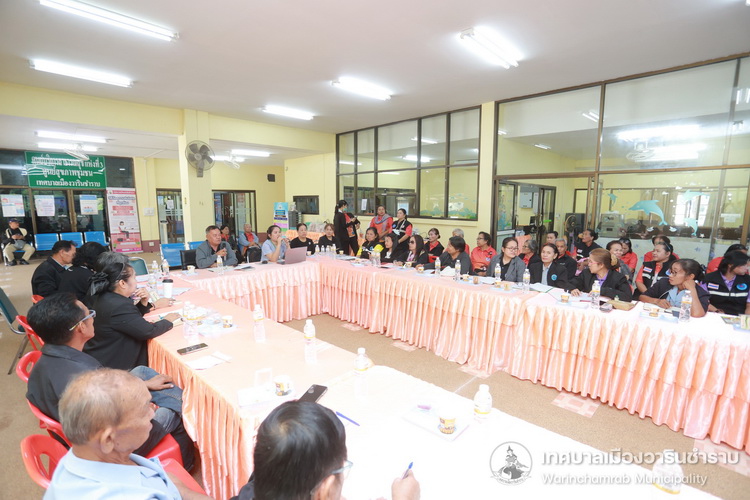 วันที่ 8 ธันวาคม 2568 เวลา 09.00 น. ศูนย์บริการสาธารณสุขแห่งที่ 3 กองสาธารณสุขและสิ่งแวดล้อม เทศบาลเมืองวารินชำราบ นำโดยนางพฤกษา ตั้งกิจวนิชกุล ผู้อำนวยการกองสาธารณสุขและสิ่งแวดล้อม พร้อมด้วยนางพีระพิชญ์ รวมธรรม หัวหน้าฝ่ายบริหารงานสาธารณสุข ร่วมเวทีประชุมสัญจรของประธาน อสม. 25 ตำบล ของอำเภอวารินชำราบ เพื่อสร้างความรู้ ความเข้าใจในนโยบายด้านสาธารณสุข และทิศทางการดำเนินงานของกระทรวงสาธารณสุขในปีงบประมาณปัจจุบัน และเสริมศักยภาพและทักษะการปฏิบัติงานของ อสม. และรับฟังปัญหา อุปสรรค ข้อเสนอแนะจากพื้นที่ การมีส่วนร่วมและความเข้มแข็งของเครือข่าย อสม.และกระตุ้นและติดตามความก้าวหน้าการดำเนินงานตามตัวชี้วัดสุขภาพชุมชน