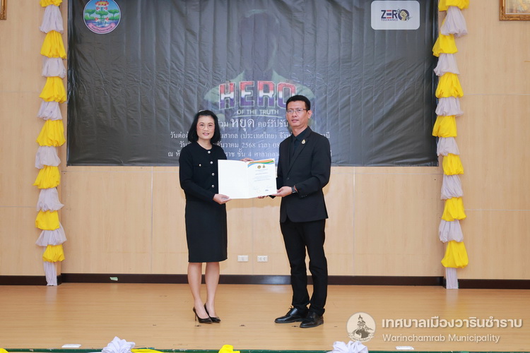 วันที่ 9 ธันวาคม 2568 เวลา 09.00 น. นายจีระชัย ไกรกังวาร นายกเทศมนตรี มอบหมายให้นางรุ่งนภา ทับหนองฮี รองปลัดเทศบาล รักษาราชการแทนปลัดเทศบาล ร่วมกิจกรรมเนื่องใน วันต่อต้านคอร์รัปชันสากล (ประเทศไทย) ภายใต้แนวคิด “HERO OF THE TRUTH ร่วมหยุดคอร์รัปชัน” เพื่อสร้างกระแสสังคมที่ไม่ทนต่อการทุจริต พร้อมผลักดันการมีส่วนร่วมของภาครัฐ ภาคเอกชน และประชาชนในการป้องกันและปราบปรามการทุจริตอย่างจริงจัง