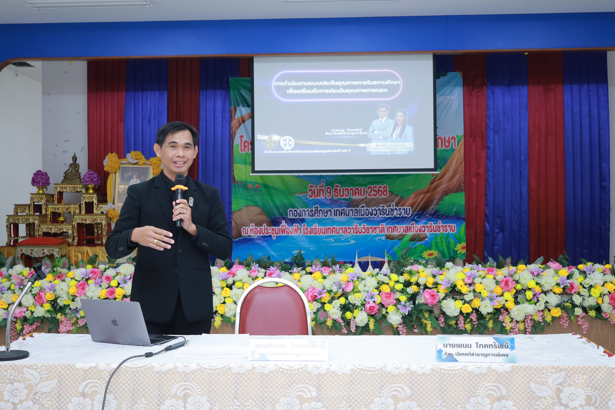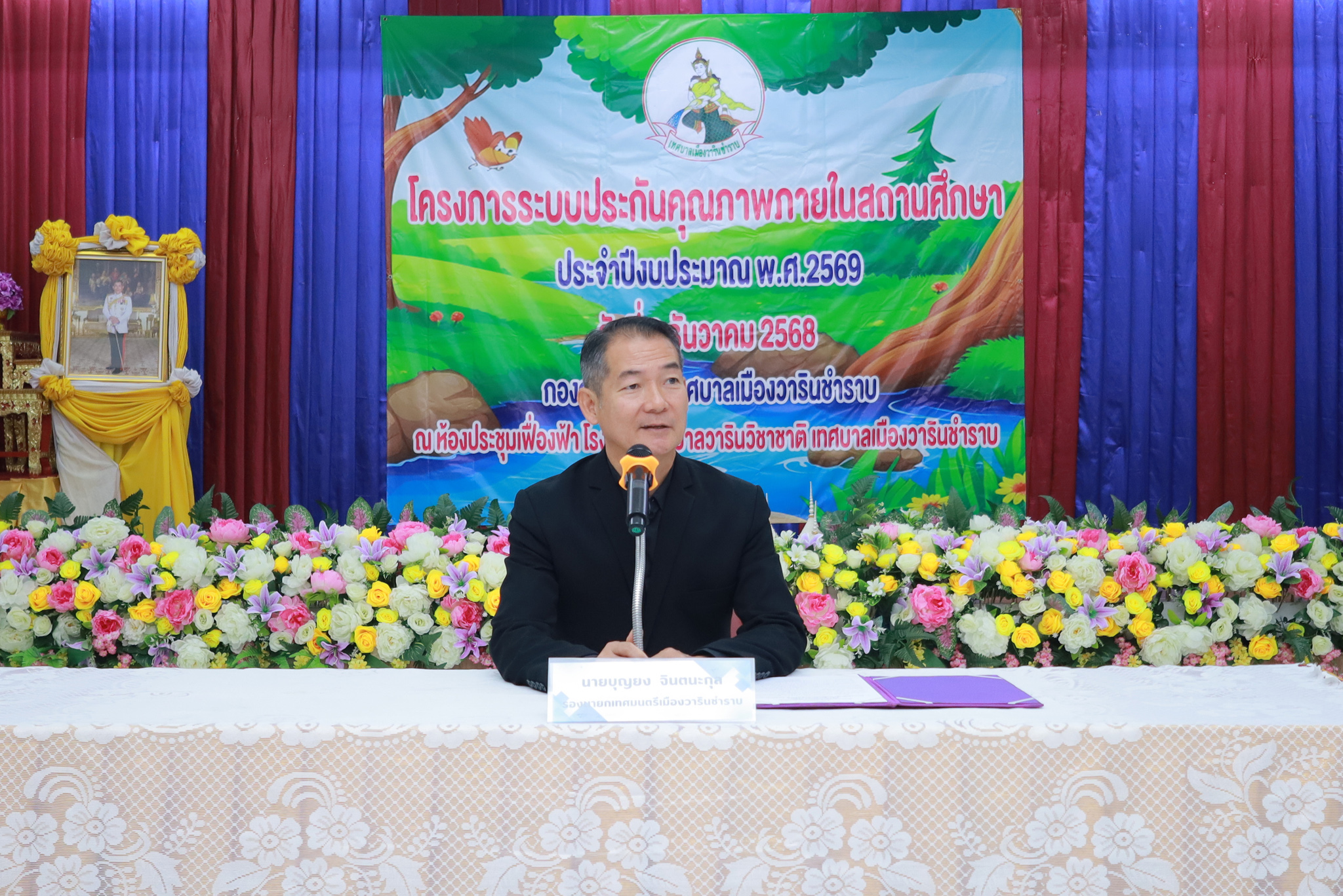 วันที่ 9 ธันวาคม 2568 เวลา 09.00 น. นายจีระชัย ไกรกังวาร นายกเทศมนตรี ได้มอบหมายให้ นายบุญยง จินตนะกุล รองนายกเทศมนตรี เป็นประธานในพิธีเปิดการฝึกอบรมเชิงปฏิบัติการโครงการระบบประกันคุณภาพภายในเพื่อเตรียมรับการประเมินคุณภาพการศึกษาภายนอก ประจำปีงบประมาณ 2569 โดยมี นางชุติมา ศรีละพันธ์ รองปลัดเทศบาล เป็นผู้กล่าวรายงาน พร้อมด้วย ผู้อำนวยการสถานศึกษา โรงเรียนในสังกัดเทศบาลทั้ง 3 แห่ง และศึกษานิเทศก์ ร่วมเป็นเกียรติในพิธีเปิด และได้รับเกียรติจาก นางศิริพร โภคทรัพย์ ศึกษานิเทศก์ชำนาญการพิเศษ, นายพนม โภคทรัพย์ ศึกษานิเทศก์ชำนาญการพิเศษ และนางสุวิมล ไวยารัตน์ ศึกษานิเทศก์ชำนาญการพิเศษ จากสำนักงานศึกษาธิการจังหวัดอุบลราชธานี มาเป็นวิทยากรในการอบรม ในการนี้ผู้บริหารสถานศึกษา และครูจากโรงเรียนเทศบาลแสนสุข เข้าร่วมรับการอบรมด้วย ณ ห้องประชุมเฟื่องฟ้า โรงเรียนเทศบาลวารินวิชาชาติ