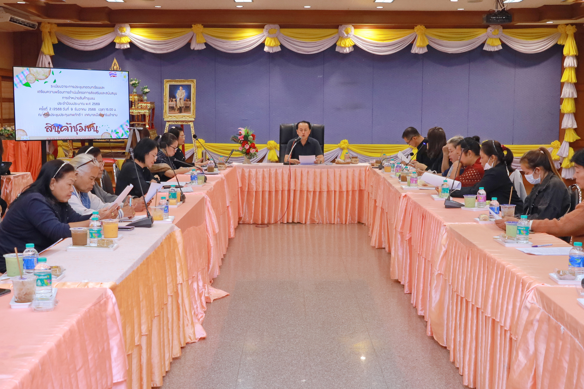 วันที่ 9 ธันวาคม 2568 เวลา 13.30 น. นายจีระชัย ไกรกังวาร นายกเทศมนตรีเมืองวารินชำราบ ได้มอบหมายให้ นายณรงชัย ประสิทธิ์ภูริปรีชา รองนายกเทศมนตรี เป็นประธานในการประชุมถอดบทเรียนและเตรียมความพร้อมการดำเนินโครงการส่งเสริมและสนับสนุนการจำหน่ายสินค้าชุมชน ประจำปีงบประมาณ 2569 ครั้งที่ 2/2568 ณ ห้องประชุมประทุมเทพภักดี 1 สำนักงานเทศบาลเมืองวารินชำราบ เพื่อถอดบทเรียนถึงปัญหาและอุปสรรคในการดำเนินโครงการ ฯ ในปีงบประมาณที่ผ่านมา เพื่อหาแนวทางพัฒนาและต่อยอดการดำเนินงานโครงการ ฯ ในปีงบประมาณ 2569 ให้บรรลุวัตถุประสงค์ในการเพิ่มขีดความสามารถของกลุ่มอาชีพในชุมชน ยกระดับการจำหน่ายสินค้า และเพิ่มช่องทางการจำหน่ายสินค้าผลิตภัณฑ์ของชุมชนในเขตเทศบาลเมืองวารินชำราบ รวมถึงส่งเสริมการนำเทคโนโลยีระบบไอที พัฒนาทักษะการจำหน่ายสินค้าออนไลน์ ให้กลุ่มอาชีพ ชุมชน ท้องถิ่น ได้มีรายได้เพิ่มขึ้น และเปิดตลาดการจำหน่ายสินค้าชุมชนให้กว้างขึ้น