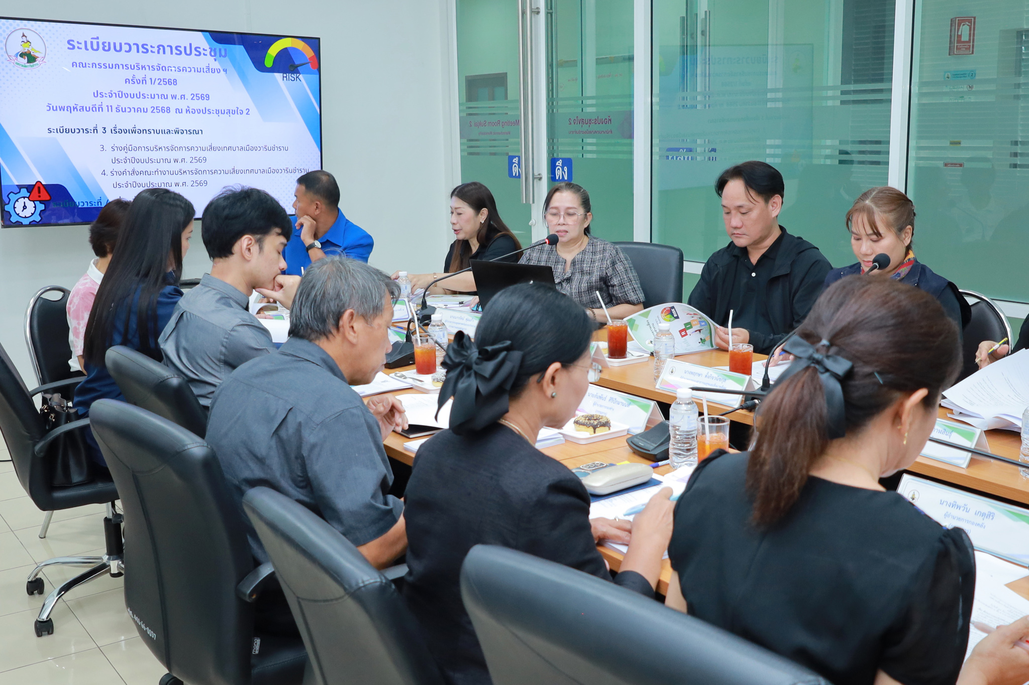 วันที่ 11 ธันวาคม 2568 เวลา 13.30 น. เทศบาลเมืองวารินชำราบ ได้ดำเนินการประชุมคณะกรรมการบริหารจัดการความเสี่ยงเทศบาลเมืองวารินชำราบ ประจำปีงบประมาณ พ.ศ. 2569 ครั้งที่ 1/2568 โดยมีนางรุ่งนภา ทับหนองฮี รองปลัดเทศบาล รักษาราชการแทนปลัดเทศบาล เป็นประธานในการประชุม ณ ห้องประชุมสุขใจ 2 สำนักงานเทศบาลเมืองวารินชำราบ ซึ่งการประชุมคร้งนี้ มีเรื่องที่ประธานแจ้งให้ทราบ ได้แก่ นโยบายการบริหารจัดการความเสี่ยงเทศบาลเมืองวารินชำราบ ประจำปีงบประมาณ พ.ศ. 2569 และคำสั่งแต่งตั้งคณะกรรมการบริหารจัดการความเสี่ยงเทศบาลเมืองวารินชำราบ ประจำปีงบประมาณ พ.ศ. 2569 และมีเรื่องพิจารณา ได้แก่ ร่างคู่มือการบริหารจัดการความเสี่ยงเทศบาลเมืองวารินชำราบ ประจำปีงบประมาณ พ.ศ. 2569 และร่างคำสั่งคณะทำงานบริหารจัดการความเสี่ยงเทศบาลเมืองวารินชำราบ ประจำปีงบประมาณ พ.ศ. 2569