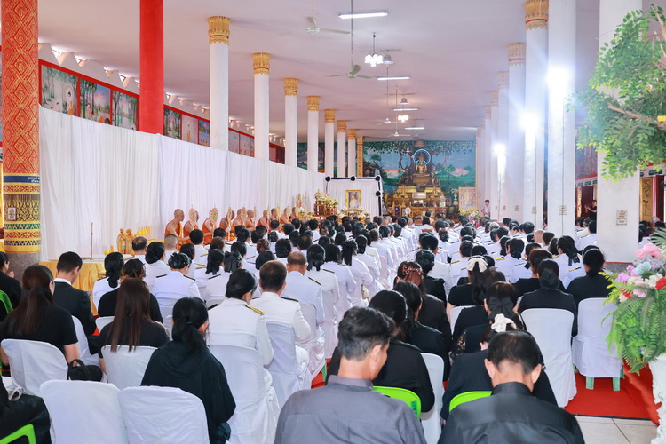 ในการนี้ ประธานในพิธีได้จุดธูปเทียนบูชาพระรัตนตรัย และถวายเครื่องทองน้อยสักการะเบื้องหน้าพระฉายาลักษณ์ สมเด็จพระนางเจ้าสิริกิติ์ พระบรมราชินีนาถ พระบรมราชชนนีพันปีหลวง จากนั้นพระสงฆ์สวดพระพุทธมนต์ สดับปกรณ์ สวดธรรมคาถา ประธานในพิธีทอดผ้าไตร พร้อมกรวดน้ำอุทิศถวายเป็นพระราชกุศล และการแสดงธรรมเทศนาโดย พระศรีรัตโนบล รองเจ้าคณะจังหวัดอุบลราชธานี เจ้าอาวาสวัดวารินทราราม