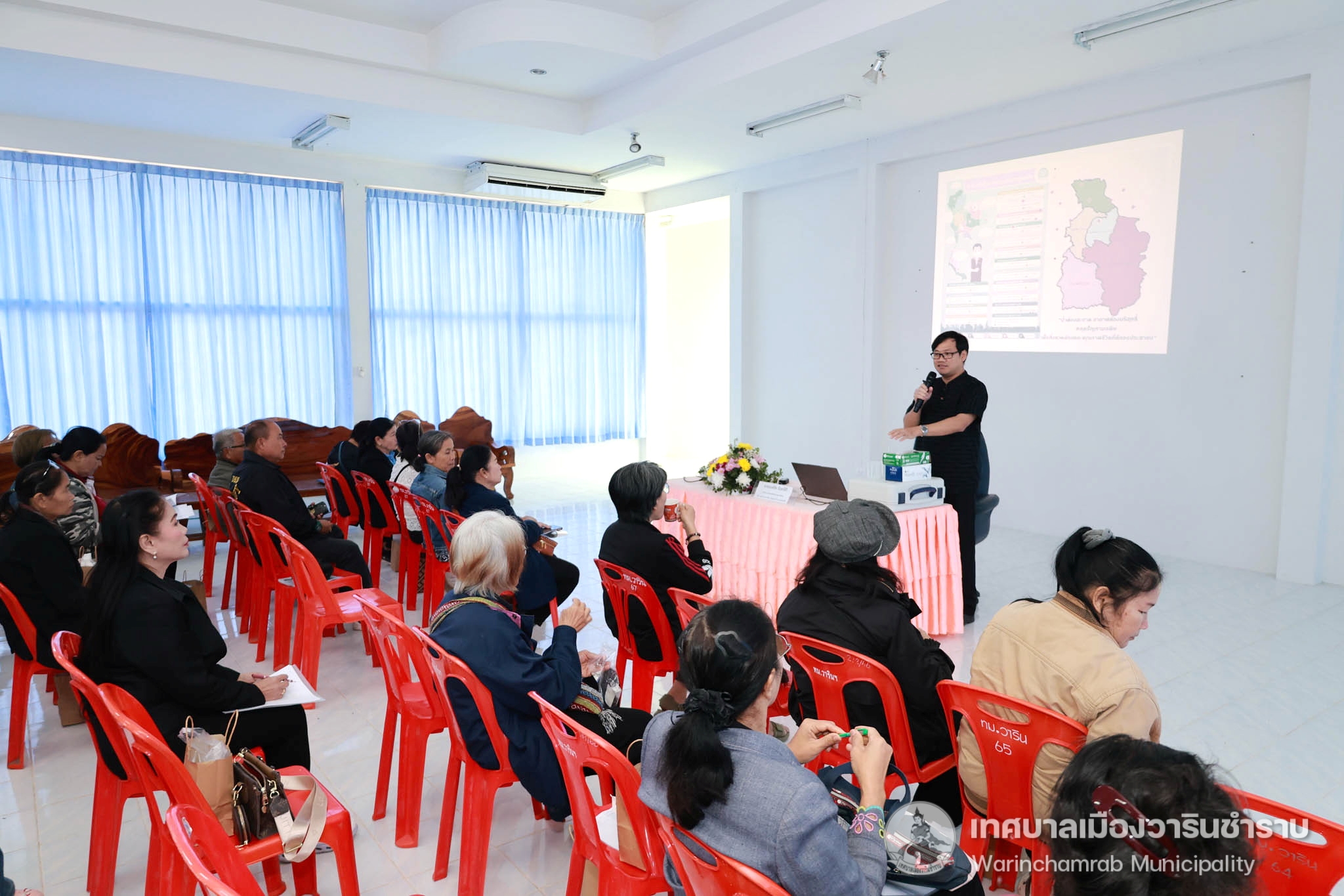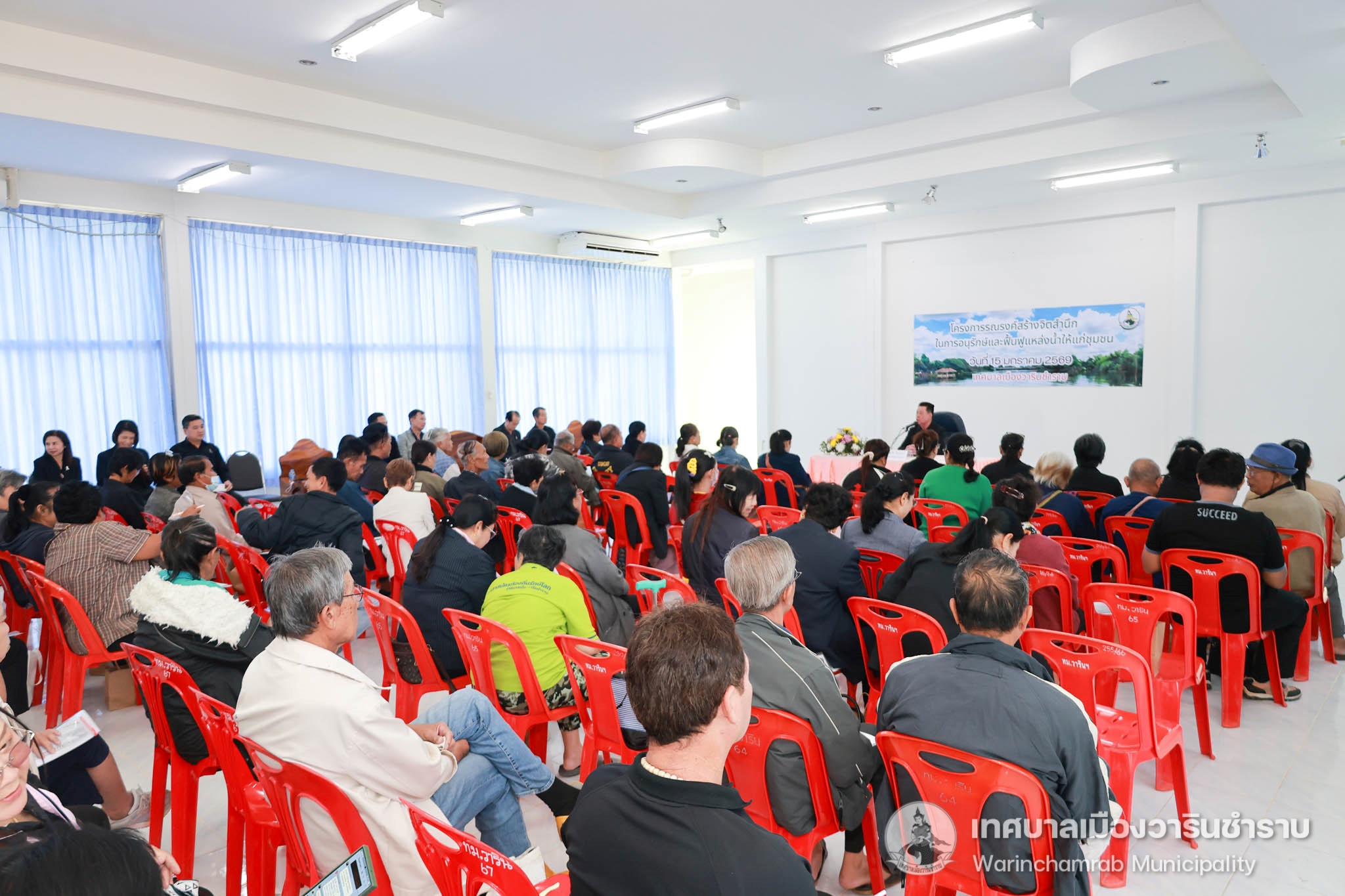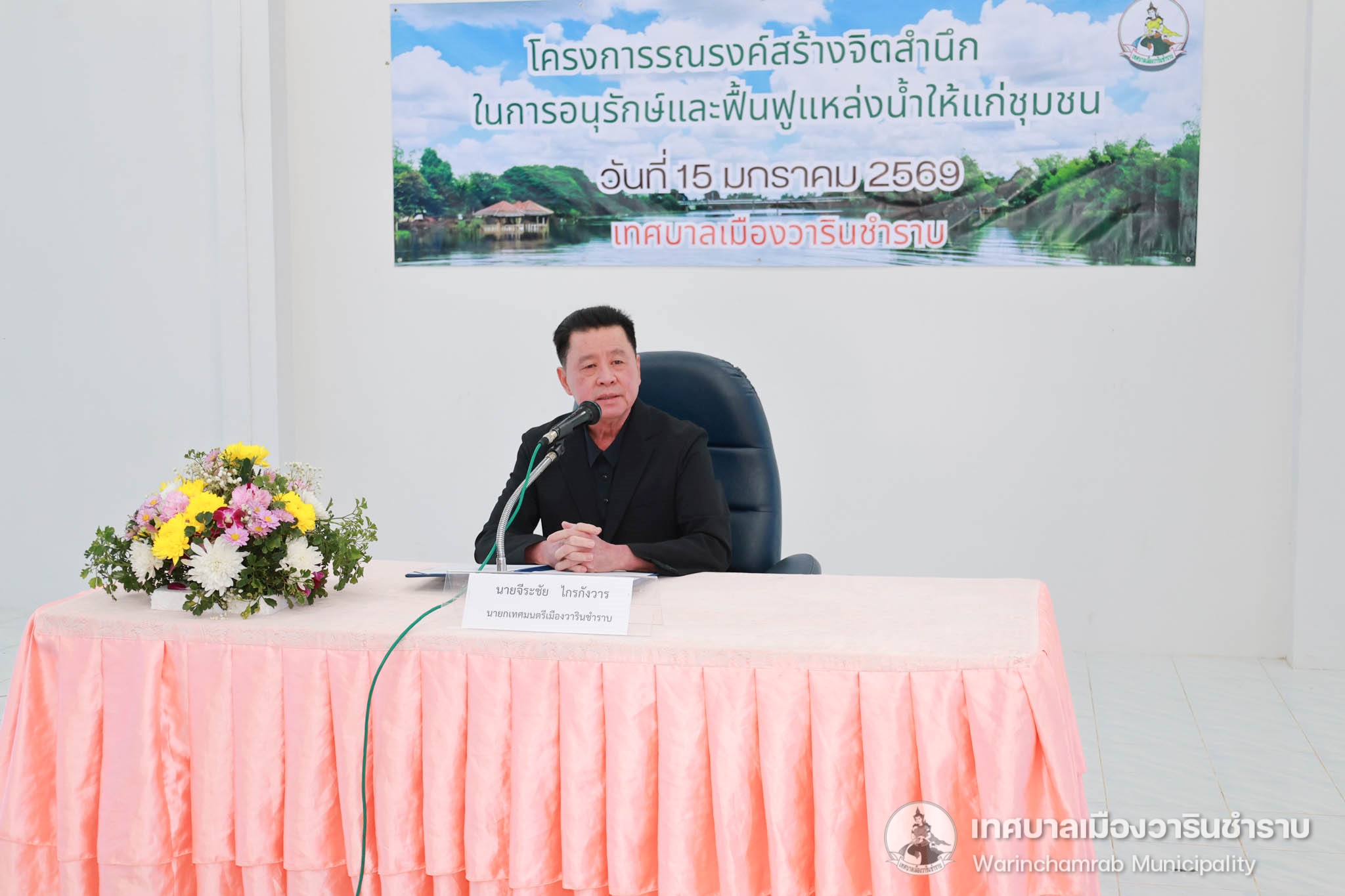 วันที่ 15 มกราคม 2569 เวลา 09.00 น. นายจีระชัย ไกรกังวาร นายกเทศมนตรีเมืองวารินชำราบ มาเป็นประธานในพิธีเปิดโครงการรณรงค์สร้างจิตสำนึกในการอนุรักษ์และฟื้นฟูแหล่งน้ำแก่ชุมชน ประจำปีงบประมาณ พ.ศ.2569 เพื่อให้ความรู้รณรงค์สร้างจิตสำนึกและความรู้ความเข้าใจให้แก่ประชาชนที่เข้ารับการอบรม และเกิดความร่วมมือในการดูแลอนุรักษ์แหล่งน้ำ เพื่อให้แหล่งน้ำสาธารณะภายในเขตเทศบาลเมืองวารินชำราบให้มีคุณภาพที่ดีขึ้น ซึ่งในอบรมครั้งนี้ได้รับเกียรติจากสมาชิกสภาเทศบาล และหัวหน้าส่วนการงาน ร่วมเป็นเกียรติในพิธีเปิดโครงการอบรบ และได้รับเกียรติจากนายมนต์ชัย จันทร์ศิริ นักวิชาการสิ่งแวดล้อมชำนาญการพิเศษ ผู้อำนวยการส่วนจัดการคุณภาพน้ำ อากาศและเสียง สำนักงานสิ่งแวดล้อม และควบคุมมลพิษที่ 12 อุบลราชธานี มาเป็นวิทยากรให้ความรู้ในครั้งนี้ ณ ห้องประชุมโครงการปรับปรุงคุณภาพน้ำ