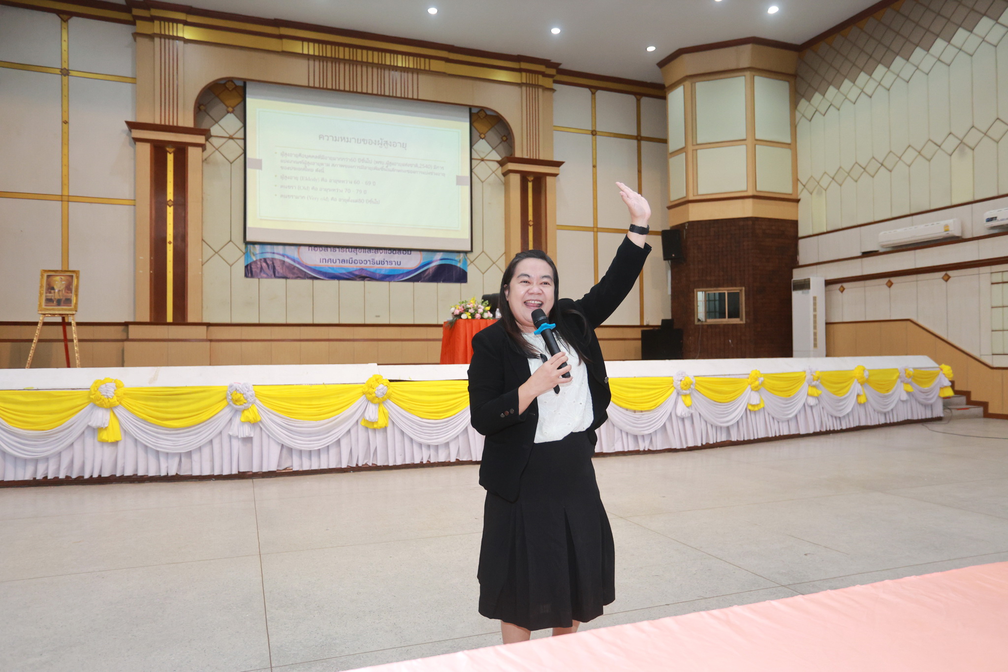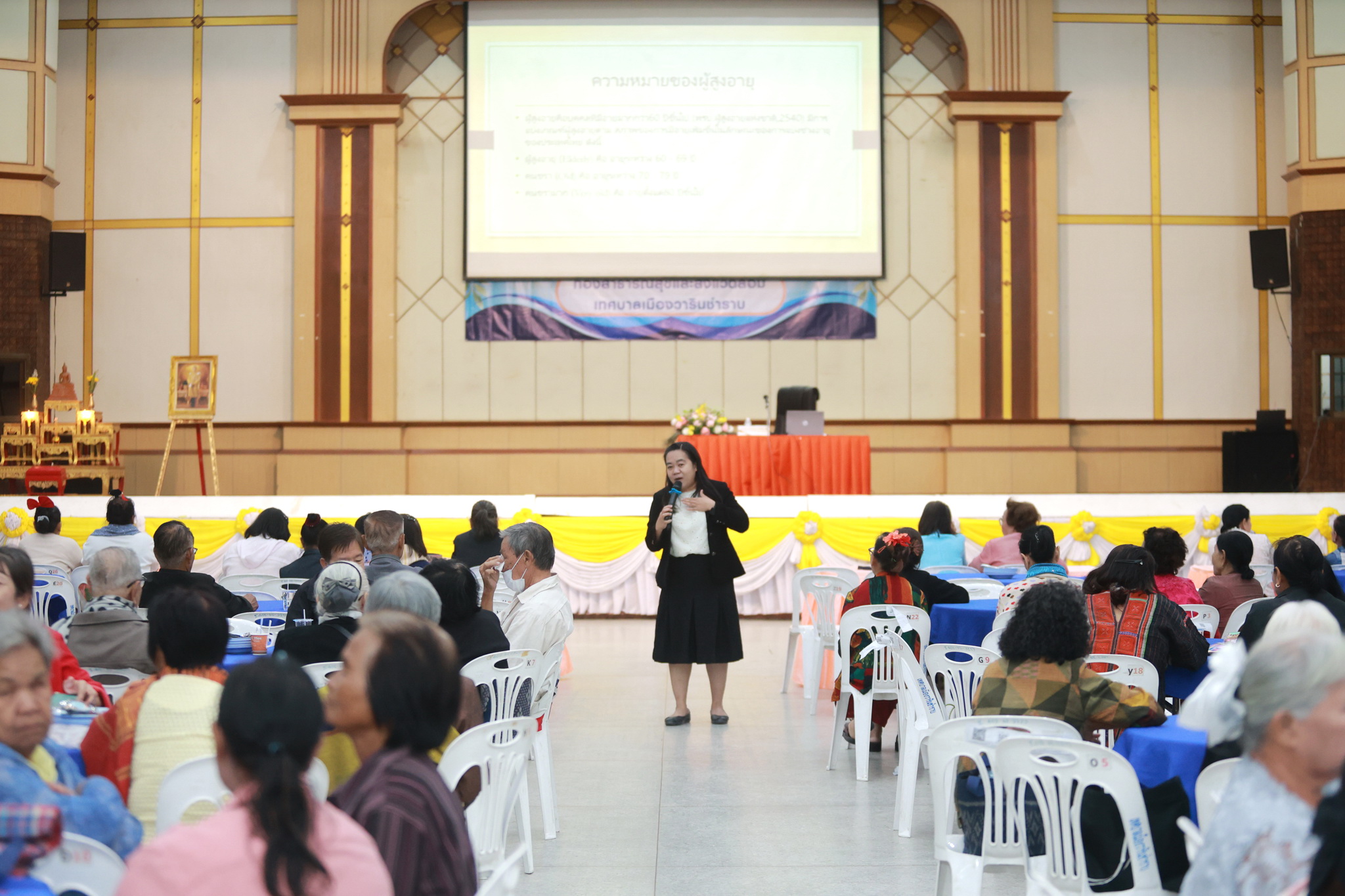 วันที่ 23 มกราคม 2569 เวลา 09.00 น. กองสาธารณสุขและสิ่งแวดล้อม เทศบาลเมืองวารินชำราบ ได้จัดโครงการส่งเสริมสุขภาพและพัฒนาคุณภาพผู้สูงวัย ประจำปี 2568 โดยมีนายจีระชัย ไกรกังวาร นายกเทศมนตรี เป็นประธานในพิธีเปิดโครงการ ฯ พร้อมด้วยสมาชิกสภาเทศบาล และหัวหน้าส่วนราชการ ณ หอประชุมประชาวาริน ซึ่งการอบรมในครั้งนี้ เป็นการขับเคลื่อนระบบรองรับสังคมสูงวัยในผู้สูงอายุในพื้นที่เทศบาลเมืองวารินชำราบ ให้ครอบคลุมทุก 5 มิติ ให้ผู้สูงอายุได้มีโอกาสแลกเปลี่ยนเรียนรู้ด้านสุขภาพและมีคุณภาพชีวิตที่ดี เป็นการส่งเสริมความรู้ให้แก่ตัวแทนผู้สูงอายุในชุมชนทั้ง 28 ชุมโดยได้รับเกียรติจากนางสาววิชญา โมฬีชาติ ตำแหน่งนักจิตวิทยาคลินิกชำนาญการพิเศษ กลุ่มงานจิตเวชและยาเสพติด จากโรงพยาบาลสรรพสิทธิประสงค์ มาเป็นวิทยากรให้ความรู้ในครั้งนี้