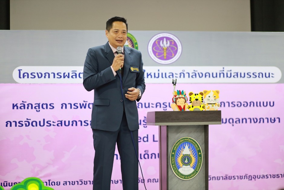 วันที่ 24 มกราคม 2569 ณ ห้องประชุมสัตตบงกช อาคารฝึกประสบการณ์วิชาชีพ คณะครุศาสตร์ มหาวิทยาลัยราชภัฏอุบลราชธานี ดร.ธเกียรติกมล ทองงอก ศึกษานิเทศก์ กองการศึกษา เทศบาลเมืองวารินชำราบ พร้อมด้วย ครู ระดับปฐมวัย โรงเรียนเทศบาลบ้านหนองตาโผ่น มิตรภาพที่ 5 ได้เข้าร่วม โครงการผลิตบัณฑิตพันธุ์ใหม่และกำลังคนที่มีสมรรถนะ หลักสูตร การพัฒนาสมรรถนะครูปฐมวัยด้านการออกแบบและการจัดประสบการณ์การเรียนรู้เพื่อสร้างความสมดุลทางภาษา (Balanced Literacy) สำหรับเด็กปฐมวัย รุ่นที่ 2 โดยมี รองศาสตราจารย์มาลี ไชยเสนา รองอธิการบดีมหาวิทยาลัยราชภัฏอุบลราชธานี ให้เกียรติเป็นประธานในพิธีเปิด พร้อมกันนี้ นางสาวอรุณวรรณ ยืนยาว หัวหน้าระดับปฐมวัย โรงเรียนเทศบาลบ้านหนองตาโผ่น มิตรภาพที่ 5 และครู ศูนย์พัฒนาเด็กเล็กเทศบาลเมืองวารินชำราบ ได้ร่วมเสวนาวิชาการ ในหัวข้อ “ประสบการณ์การจัดการเรียนรู้เพื่อสร้างความสมดุลทางภาษา (Balanced Literacy) โดยใช้วรรณกรรมเป็นฐาน” เพื่อเป็นการแลกเปลี่ยนประสบการณ์การจัดการเรียนรู้แก่ครูผู้เข้าร่วมโครงการ และนักศึกษาสาขาการศึกษาปฐมวัย