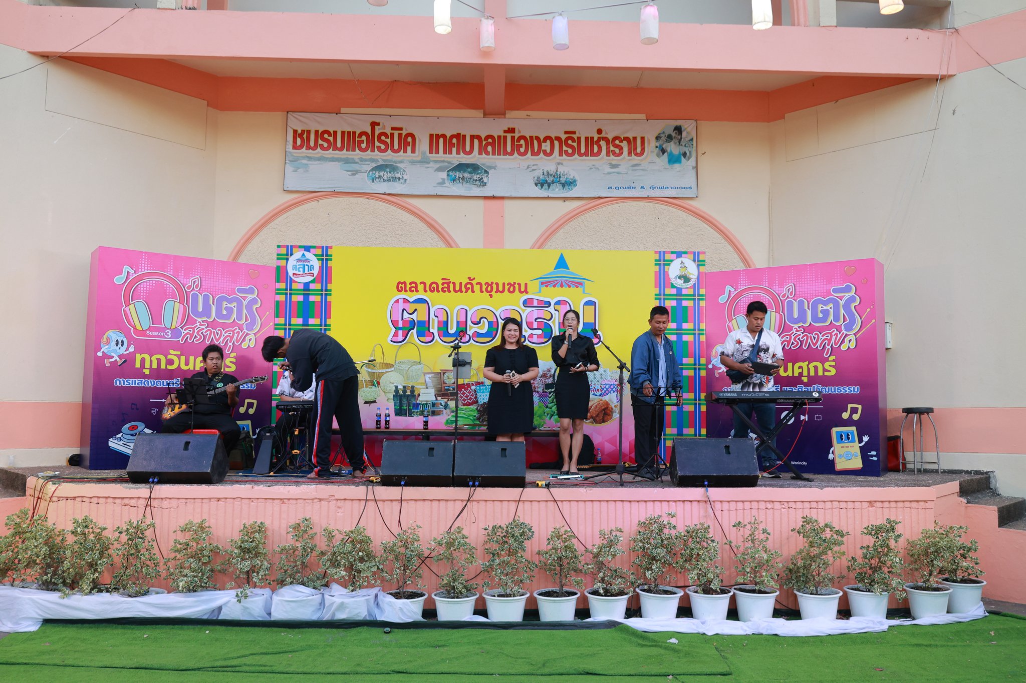 วันที่ 30 มกราคม 2569 เทศบาลเมืองวารินชำราบ จัดกิจกรรม "ดนตรีสร้างสุข" ซีซั่นที่ 3 ครั้งที่ 4 เพื่อพัฒนาสุขภาพกาย สุขภาพจิตใจ สร้างคุณภาพชีวิต รวมถึงเพื่อปลูกฝังให้ประชาชน มีใจรักและตระหนักถึงคุณค่าของศิลปะการดนตรี ความผ่อนคลาย พักผ่อนหย่อนใจ และสร้างสุขภาวะทางอารมณ์ และส่งเสริมให้เยาวชนและประชาชนมีพื้นที่ในการแสดงความสามารถทางด้านดนตรี และส่งเสริมสินค้าชุมชนที่เป็นมิตรต่อสิ่งแวดล้อมจากชุมชนในเขตเทศบาลเมืองวารินชำราบ ซึ่งบรรยากาศภายในงานแสดงดนตรี จากต้น ลำมูล (นายอุดมศักดิ์ นวลศิริ นายอำเภอวารินชำราบ) ร่วมสร้างความคึกคักและความบันเทิงแก่ผู้ที่มาร่วมงานในครั้งนี้ พบกับกิจกรรม "ดนตรีสร้างสุข" ทุกเย็นวันศุกร์‘ ตั้งแต่เวลา 17.00 น. เป็นต้นไป ณ บริเวณถนนภายในทุ่งคำน้ำแซบ (หน้าศูนย์กีฬาฯ - ลานแอโรบิค)