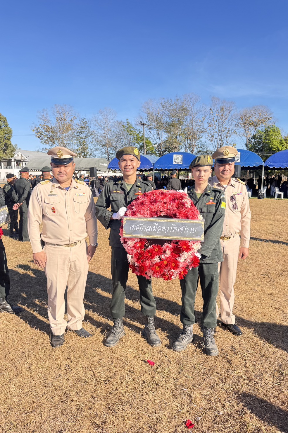 วันที่ 3 กุมภาพันธ์ 2569 นายจีระชัย ไกรกังวาร นายกเทศมนตรี ได้มอบหมายให้ จ่าเอกประกาศ ตระการไทย หัวหน้าสำนักปลัดเทศบาล นำเจ้าหน้าที่เทศบาลเมืองวารินชำราบ ร่วมพิธีวางพวงมาลาเนื่องในวันทหารผ่านศึก ประจำปี 2569 โดยมี นายสรชาย ครองยุทธ ปลัดจังหวัดอุบลราชธานี เป็นประธานในพิธี ณ อนุสาวรีย์วีรชน ค่ายสรรพสิทธิประสงค์ มณฑลทหารบกที่ 22 เพื่อรำลึกถึงวีรกรรมความกล้าหาญและความเสียสละของทหารผ่านศึกที่ได้ปฏิบัติหน้าที่ปกป้องอธิปไตยของชาติ และเพื่อน้อมรำลึกถึงพระมหากรุณาธิคุณแด่ สมเด็จพระนางเจ้าสิริกิติ์พระบรมราชินีนาถ พระบรมราชชนนีพันปีหลวง