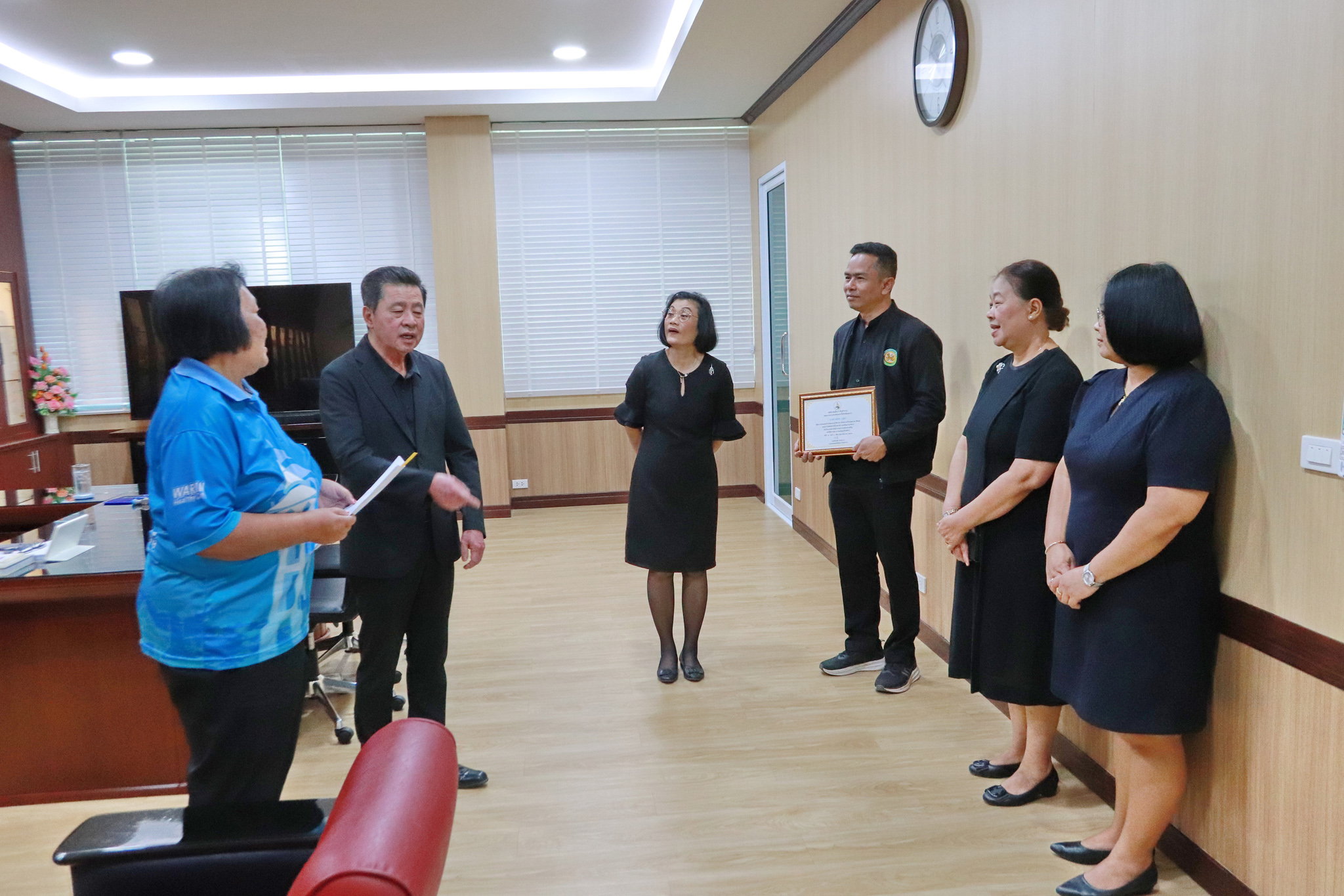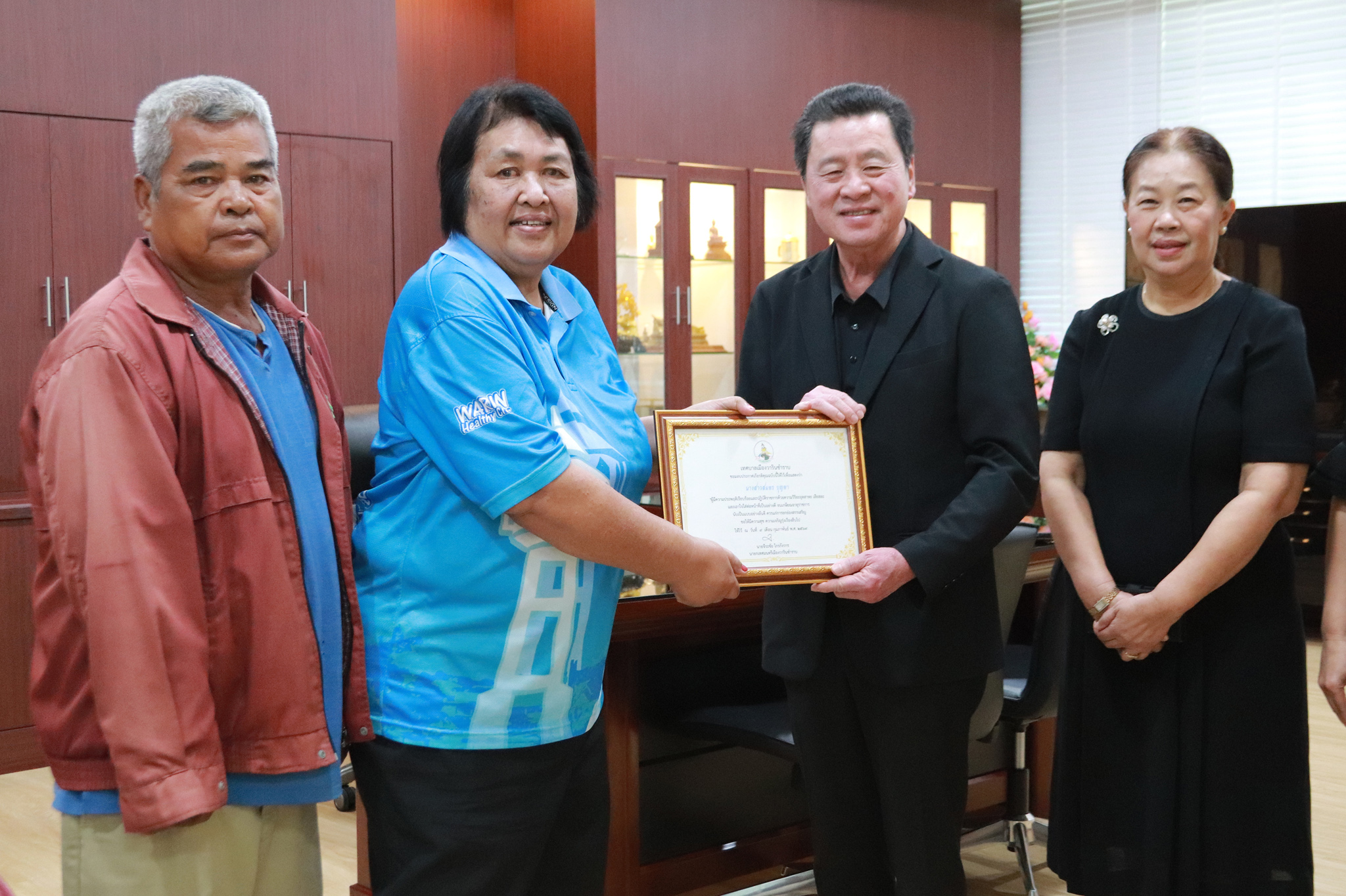 วันที่ 9 กุมภาพันธ์ 2569 เวลา 11.00 น. นายจีระชัย ไกรกังวาร นายกเทศมนตรีเมืองวารินชำราบ พร้อมด้วย นางรุ่งนภา ทับหนองฮี รองปลัดเทศบาล รักษาราชการแทนปลัดเทศบาล ได้แสดงกตเวทิตาจิตแก่พนักงานจ้างทั่วไป สังกัดกองสาธาณณสุขและสิ่งแวดล้อม ที่จะพ้นจากราชการเนื่องจากอายุครบ 60 ปีบริบูรณ์ จำนวน 1 ท่าน ณ ห้องทำงานคณะผู้บริหารเทศบาลเมืองวารินชำราบ ในฐานะของ เทศบาลเมืองวารินชำราบ ต้องขอขอบคุณท่านที่ได้ปฏิบัติหน้าที่ด้วยความทุ่มเทวิริยะอุตสาหะตลอดในช่วงอายุราชการ และถึงแม้ท่านจะได้เกษียณพ้นจากราชการไปแล้ว แต่พวกเราชาวเทศบาลเมือวารินชำราบก็ยังคงจดจำคุณงามความดีที่ท่านได้มีต่อหน่วยงาน และประชาชนชาวเมืองวารินชำราบตลอดไป