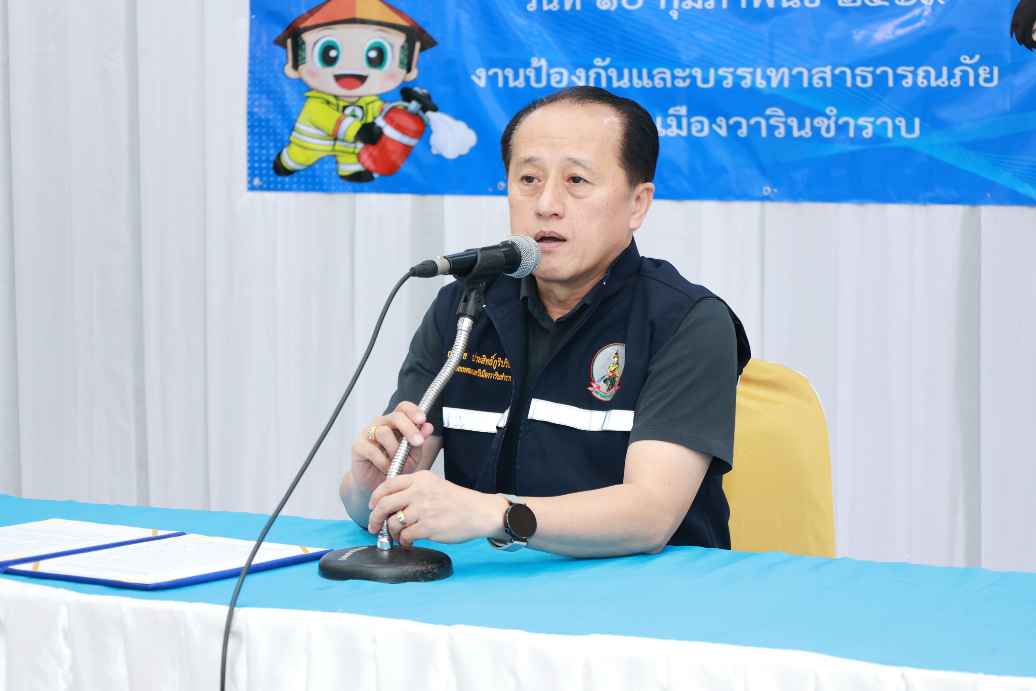 วันที่ 10 กุมภาพันธ์ 2569 เวลา 09.00 น. ณ ห้องประชุมโรงเรียนเทศบาลบ้านหนองตาโผ่น มิตรภาพที่ 5 นายจีระชัย ไกรกังวาร นายกเทศมนตรีเมืองวารินชำราบ ได้มอบหมายให้นายณรงชัย ประสิทธิ์ภูริปรีชา รองนายกเทศมนตรี มาเป็นประธานพิธีเปิดโครงการป้องกันและบรรเทาสาธารณภัยในสถานศึกษาในสังกัดเทศบาลเมืองวารินชำราบ ประจำปี 2569 ในหัวข้อ"การดับเพลิงขั้นต้น การปฐมพยาบาลเบื้องต้นและการช่วยฟื้นคืนชีพ (CPR)" พร้อมด้วยหัวหน้าส่วนการงานร่วมเป็นเกียรติในพิธีเปิดโครงการฯ เพื่อให้ความรู้ความเข้าใจแก่นักเรียนและบุคลากรทางการศึกษา เกี่ยวกับการดับเพลิงขั้นต้น สามารถใช้เครื่องมือและอุปกรณ์ดับเพลิงได้อย่างถูกวิธี และปลอดภัย ซึ่งจะแบ่งการอบรมออกเป็นทั้งภาคทฤษฎีและภาคปฏิบัติ โดยมีเจ้าหน้าที่จากงานป้องกันและบรรเทาสาธารณภัย เทศบาลเมืองวารินชำราบ เป็นวิทยากรบรรยายให้ความรู้ทั้งทั้งภาคทฤษฎีและภาคปฏิบัติในการอบรมในครั้งนี้