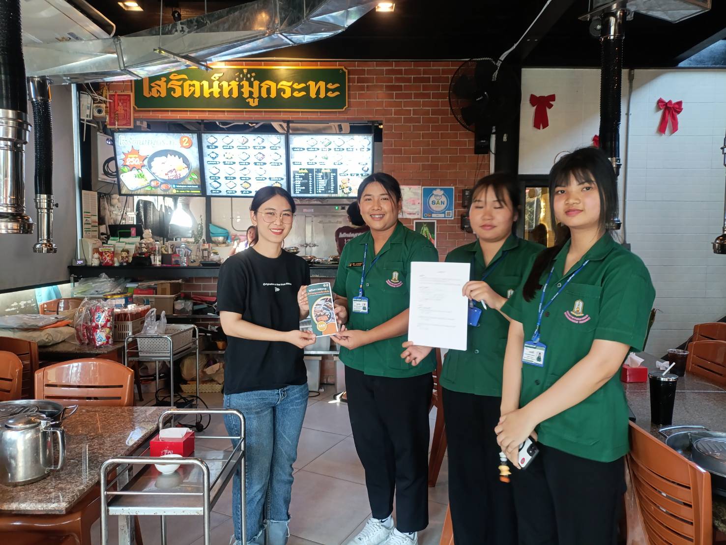 วันที่ 11 กุมภาพันธ์ 2569 งานสุขาภิบาลและอนามัยสิ่งแวดล้อม กองสาธารณสุขและสิ่งแวดล้อม เทศบาลเมืองวารินชำราบ นำโดยนางสาวชนัญญา ศุภลักษณ์ นักวิชาการสุขาภิบาลปฏิบัติการ, นางสาวศิริมาส สิทธิโชค นักวิชาการสุขาภิบาลปฏิบัติการ และเจ้าหน้าที่กองสาธารณสุขและสิ่งแวดล้อม ดำเนินการออกตรวจเฝ้าระวังการใส่สารฟอร์มาลินในอาหารทะเล ภายในร้านหมูกระทะ, ชาบู, ปิ้งย่าง ในพื้นที่เทศบาลเมืองวารินชำราบ เพื่อเป็นการเฝ้าระวัง และสร้างความมั่นใจให้กับประชาชน ด้วยสถานการณ์การบริโภคอุปโภคของประชาชนที่มีความนิยมในอาหารจำพวกร้านหมูกระทะ, ชาบู, ปิ้งย่าง เพิ่มมากขึ้นเพื่อเป็นการเฝ้าระวังและตรวจสอบคุณภาพความปลอดภัยของอาหาร