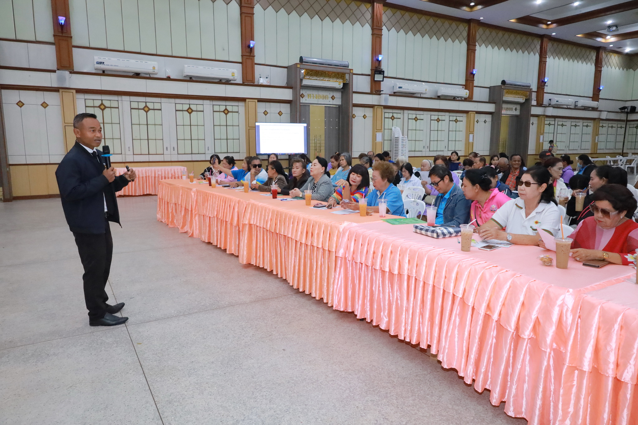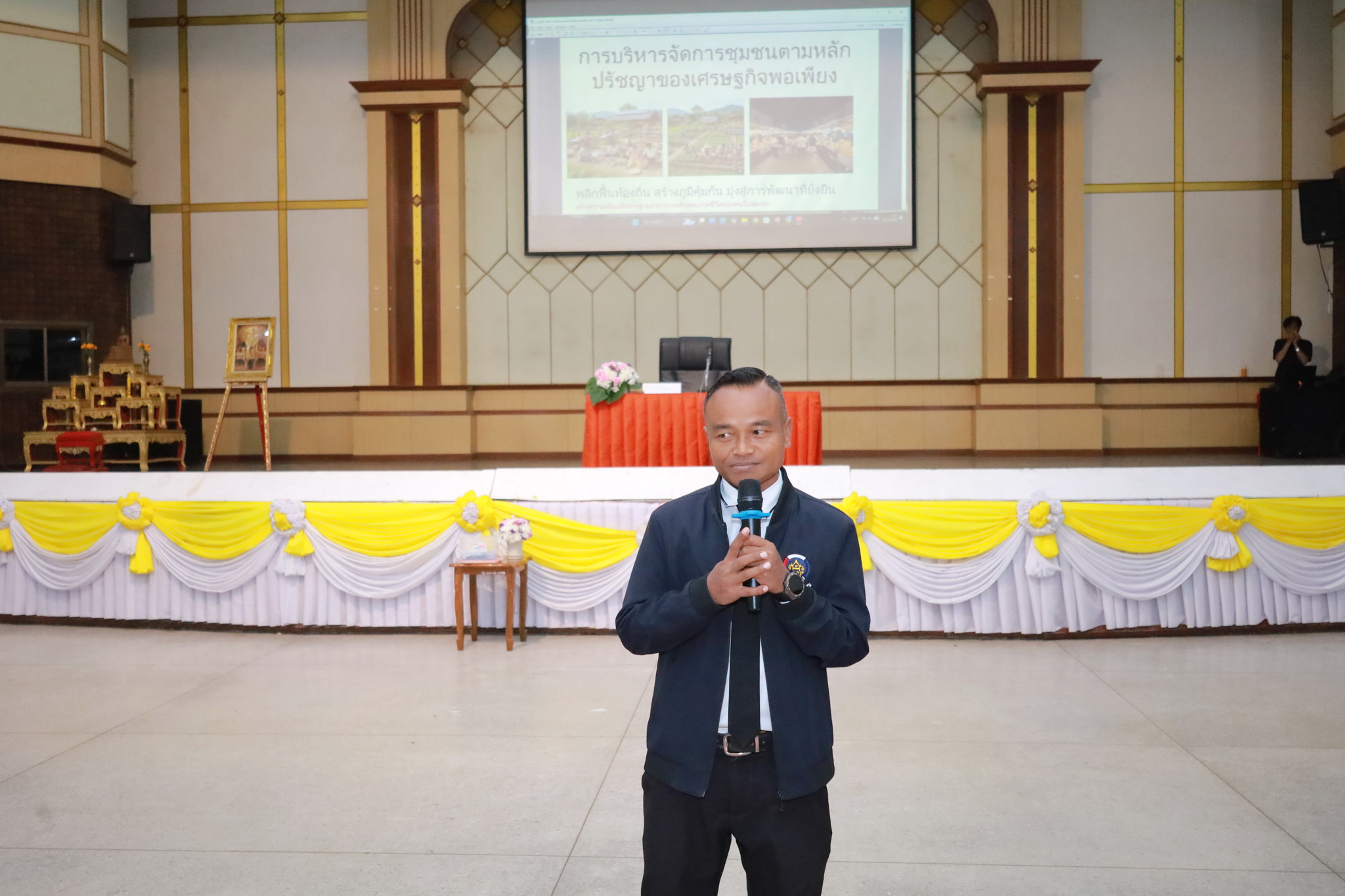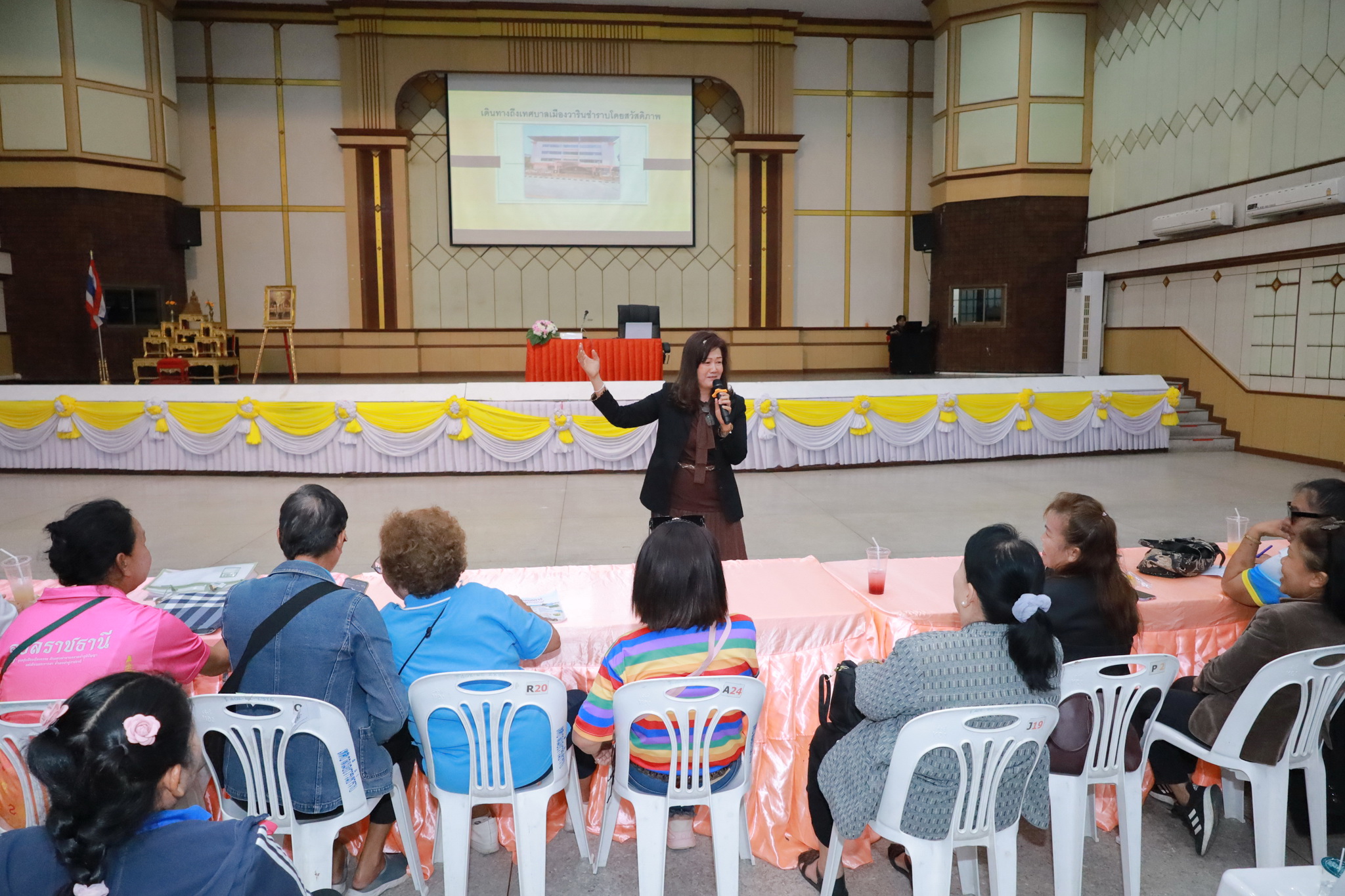 วันที่ 27 กุมภาพันธ์ 2569 เวลา 09.00 น. ณ หอประชุมประชาวาริน กองสวัสดิการสังคม เทศบาลเมืองวารินชำราบ ได้จัดโครงการอบรมสัมมนาและศึกษาดูงานคณะกรรมการชุมชน ประจำปี 2569 ขึ้นเป็นวันที่ 3 เพื่อพัฒนาขีดความสามารถของผู้นำชุมชนในการบริหารจัดการชุมชน ส่งเสริมให้เกิดกระบวนการเรียนรู้แลกเปลี่ยน และสร้างเครือข่ายการพัฒนาชุมชนเมืองอย่างเป็นระบบอันจะส่งผลให้เกิดการ เปลี่ยนแปลงทางสังคมในชุมชนได้ดีขึ้น ซึ่งในการอบรมครั้งนี้ได้รับเกียรติจากนายเชษฐ์ อุปมา นักวิชาการพัฒนาการชุมชนชำนาญการ มาเป็นวิทยากรให้ความรู้ ในเรื่องการบริหารจัดการชุมชนตามหลักปรัญญาเศรษฐกิจพอเพียง