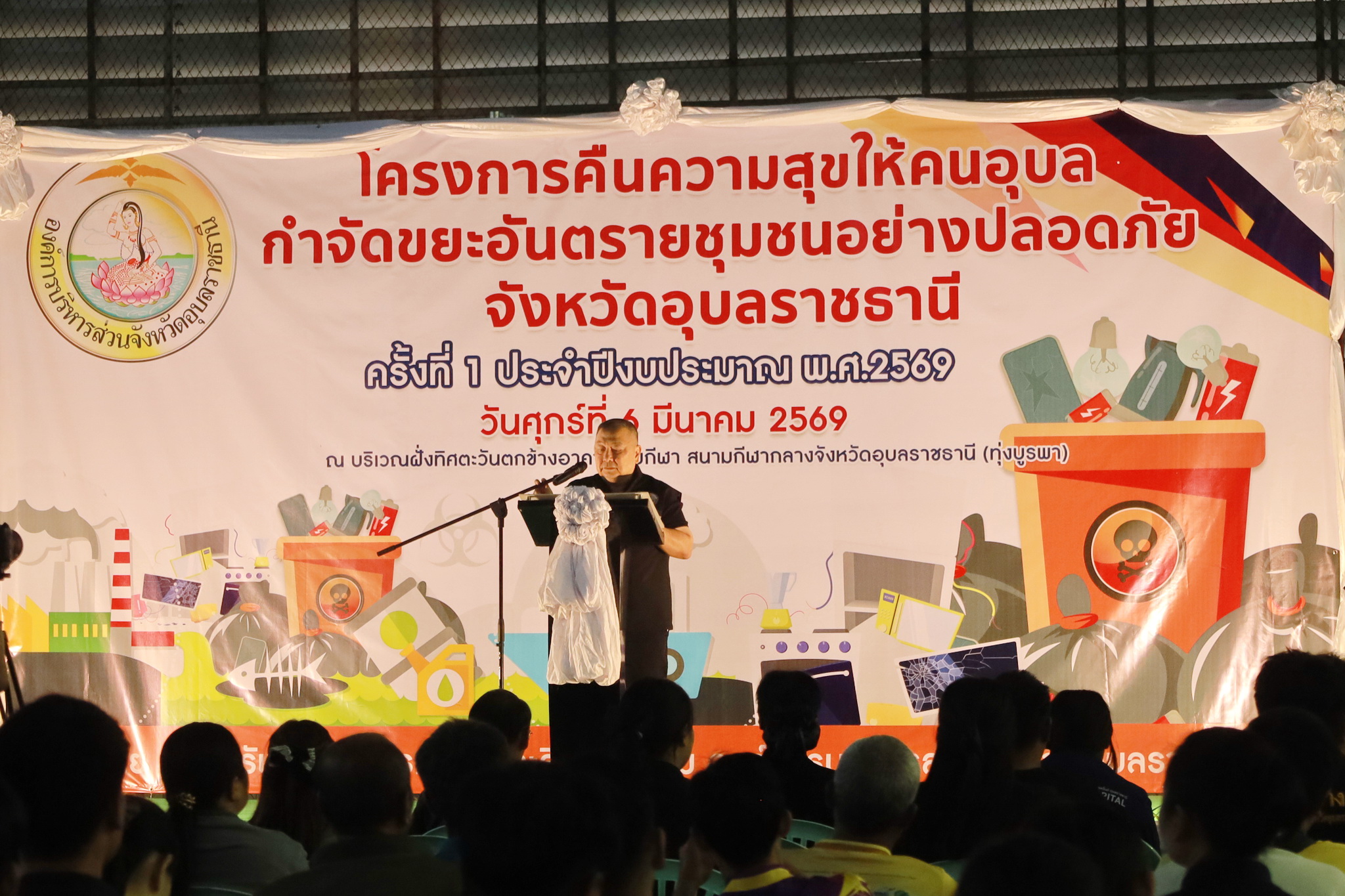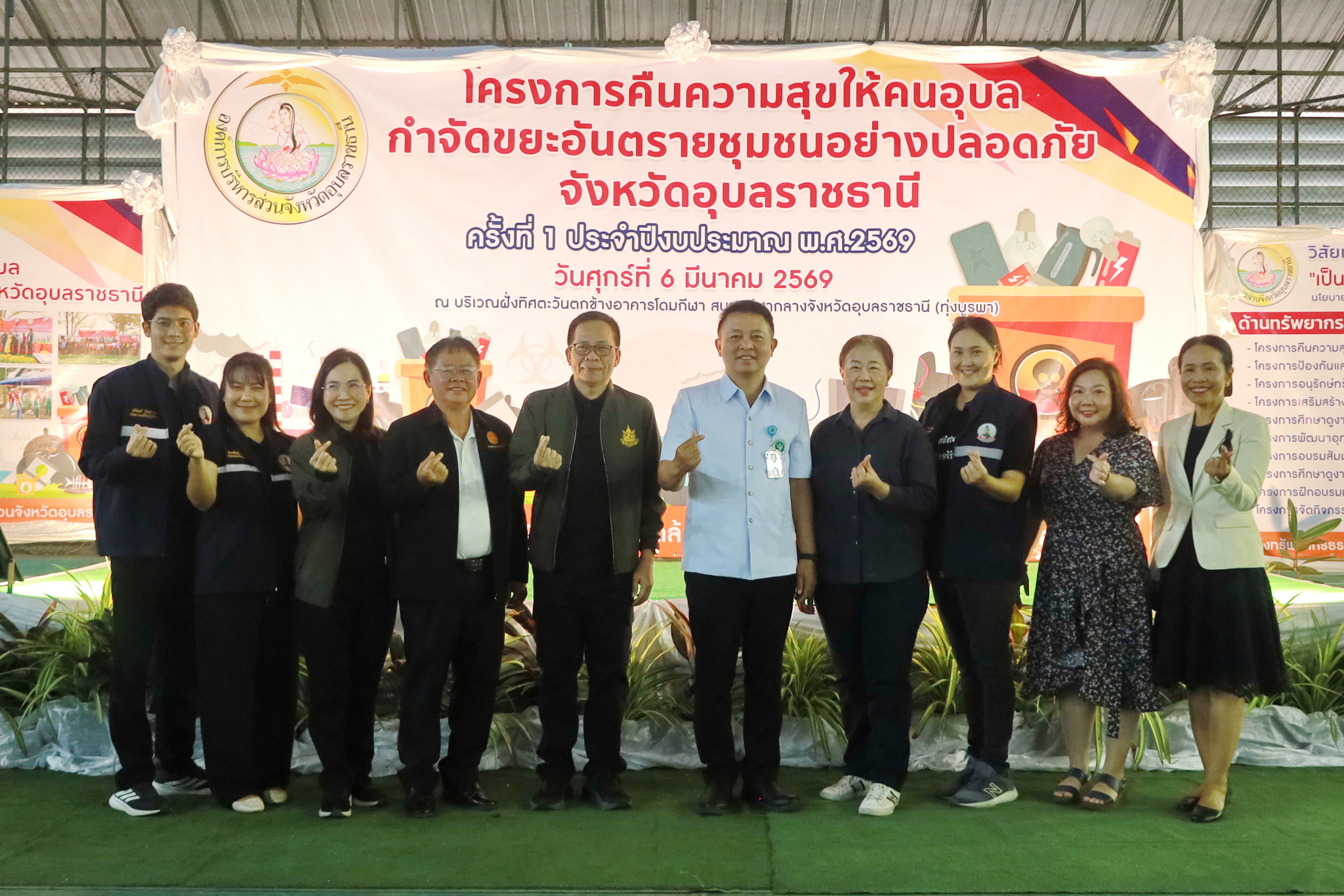 วันที่ 6 มีนาคม 2569 เวลา 09.00 น ณ บริเวณสนามกีฬากลางจังหวัดอุบลราชธานี (ทุ่งบูรพา) อำเภอเมืองอุบลฯ จังหวัดอุบลราชธานี นางพฤกษา ตั้งกิจวนิชกุล ผู้อำนวยการกองสาธารณสุขและสิ่งแวดล้อม พร้อมด้วยนางพีระพิชญ์ รวมธรรม หัวหน้าฝ่ายบริหารงานสาธารณสุข , นางสาวชนัญญา ศุภลักษณ์ นักวิชาการสุขาภิบาลปฏิบัติการ, นางสาวศิริมาส สิทธิโชค นักวิชาการสุขาภิบาลปฏิบัติการ และเจ้าหน้าที่กองสาธารณสุขและสิ่งแวดล้อม ดำเนินการนำส่งขยะอันตรายที่ได้รวบรวมจากชุมชนในเขตเทศบาลให้แก่องค์การบริหารส่วนจังหวัดอุบลราชธานี เพื่อนำขยะอันตรายไปดำเนินการกำจัดอย่างถูกวิธีภายใต้โครงการคืนความสุขให้คนอุบล กำจัดขยะอันตรายชุมชนอย่างปลอดภัย จังหวัดอุบลราชธานี ประจำปีงบประมาณ พ.ศ. 2569 ครั้งที่ 1 ทั้งนี้ จังหวัดอุบลราชธานี มีมติคณะกรรมการบริหารจัดการขยะมูลฝอยจังหวัดอุบลราชธานี เห็นชอบให้องค์การบริหารส่วนจังหวัดอุบลราชธานี เป็นหน่วยงานหลักในการรวบรวมนำส่งกำจัดขยะอันตรายชุมชน ได้แก่ หลอดไฟฟ้าทุกชนิด ถ่านไฟฉาย กระป๋องสเปรย์ แบตเตอรี่มือถือ และอุปกรณ์ไฟฟ้าอิเล็กทรอนิกส์ ไปกำจัดให้ถูกต้องตามหลักวิชาการ เพื่อลดมลพิษที่อาจเกิดขึ้นจากขยะเหล่านี้ ต่อไป