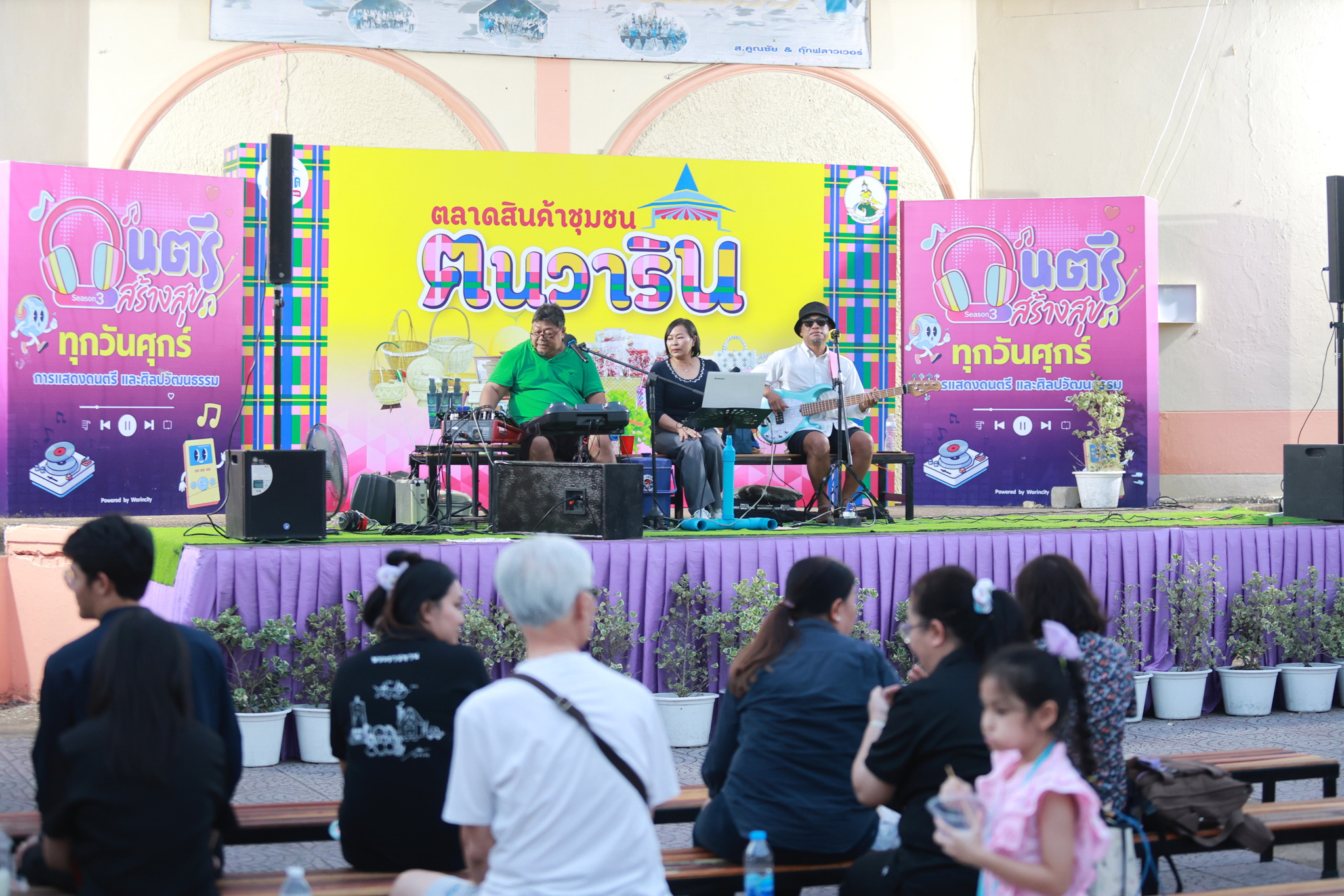 วันที่ 6 มีนาคม 2569 เวลา 17.00 น. เทศบาลเมืองวารินชำราบ ได้จัดงานกิจกรรม "ดนตรีสร้างสุข" ซีซั่นที่ 3 ครั้งที่ 8/2569 เพื่อพัฒนาสุขภาพกาย สุขภาพจิตใจ สร้างคุณภาพชีวิต รวมถึงเพื่อปลูกฝังให้ประชาชน มีใจรักและตระหนักถึงคุณค่าของศิลปะการดนตรี ความผ่อนคลาย พักผ่อนหย่อนใจ และสร้างสุขภาวะทางอารมณ์ และส่งเสริมให้เยาวชนและประชาชนมีพื้นที่ในการแสดงความสามารถทางด้านดนตรี และส่งเสริมสินค้าชุมชนที่เป็นมิตรต่อสิ่งแวดล้อมจากชุมชนในเขตเทศบาลเมืองวารินชำราบ