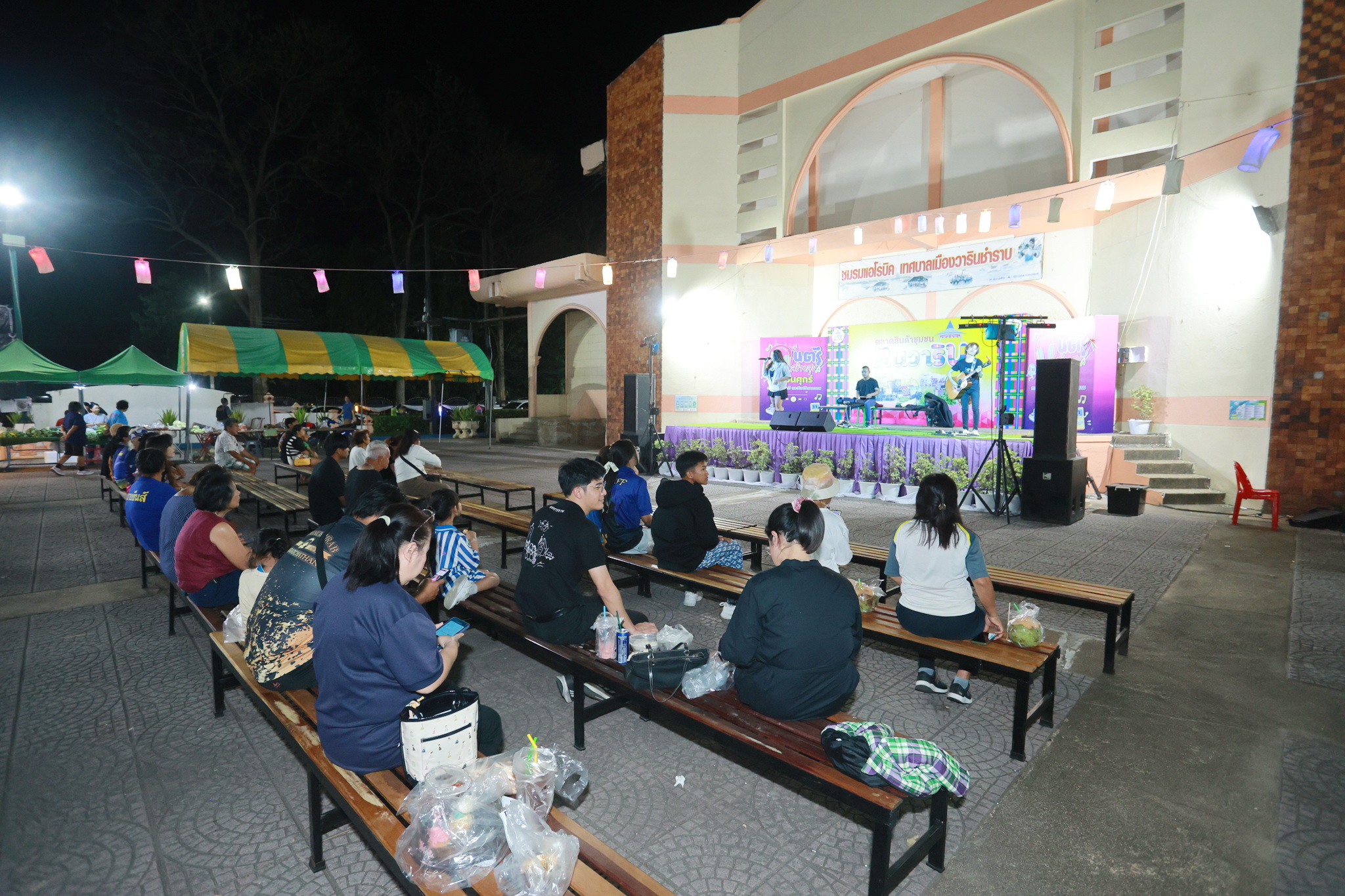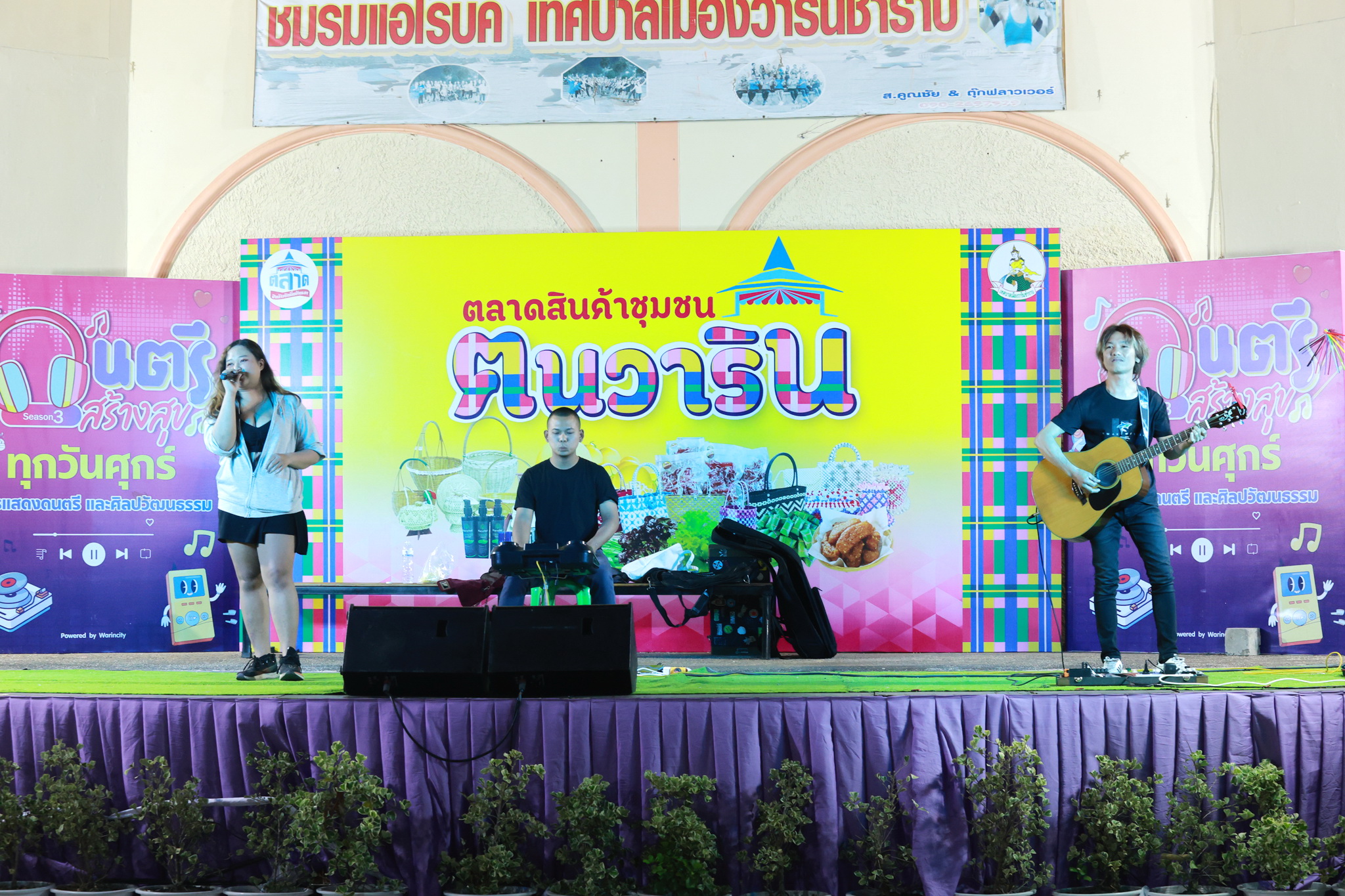 วันที่ 13 มีนาคม 2569 เวลา 17.00 น. เทศบาลเมืองวารินชำราบ ได้จัดงานกิจกรรม "ดนตรีสร้างสุข" ซีซั่นที่ 3 ครั้งที่ 10/2569 เพื่อพัฒนาสุขภาพกาย สุขภาพจิตใจ สร้างคุณภาพชีวิต รวมถึงเพื่อปลูกฝังให้ประชาชน มีใจรักและตระหนักถึงคุณค่าของศิลปะการดนตรี ความผ่อนคลาย พักผ่อนหย่อนใจ และสร้างสุขภาวะทางอารมณ์ และส่งเสริมให้เยาวชนและประชาชนมีพื้นที่ในการแสดงความสามารถทางด้านดนตรี และส่งเสริมสินค้าชุมชนที่เป็นมิตรต่อสิ่งแวดล้อมจากชุมชนในเขตเทศบาลเมืองวารินชำราบ สำหรับกิจกรรมในวันนี้ พบกับ วงเบรกเกอร์แบนด์