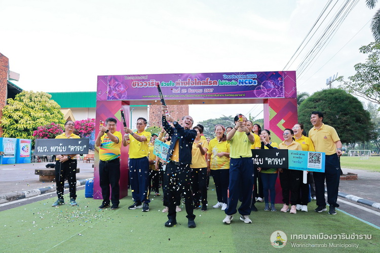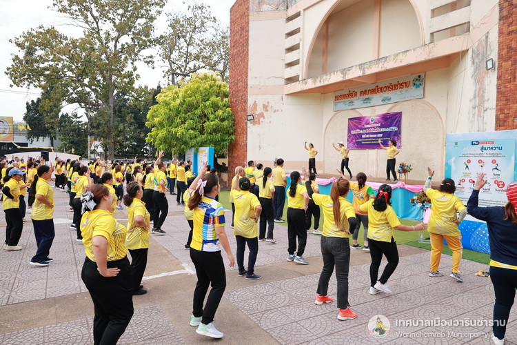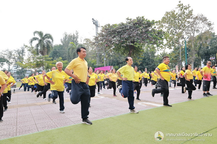 วันที่ 25 ธันวาคม 2567 เวลา 07.00 น. นายจีระชัย ไกรกังวาร นายกเทศมนตรี ได้มอบหมายให้ นายณรงชัย ประสิทธิ์ภูริปรีชา รองนายกเทศมนตรี พร้อมด้วย นางพฤกษา ตั้งกิจวนิชกุล ผู้อำนวยการกองสาธารณสุขและสิ่งแวดล้อม ,อาสาสมัครสาธารณสุข (อสม.) เทศบาลเมืองวารินชำราบ และประชาชนทั่วไป ร่วมกิจกรรมโครงการรณรงค์ชาววารินร่วมใจ ห่างไกลโรคไม่ติดต่อ (NCDs) ประจำปีงบประมาณ 2568 โดยมีนายแพทย์ธีระพงษ์ แก้วภมร นายแพทย์สาธารณสุขจังหวัดอุบลราชธานี เป็นประธานในพิธี เพื่อขับเคลื่อนการส่งเสริมการออกกำลังกาย เพื่อสุขภาพ ภายใต้วิถีชีวิตของประชาชนส่งเสริมการมีสุขภาพที่ดี และเน้นการมีส่วนร่วมกับสังคม และช่วยสร้างกระแสในการออกกำลังกายส่งเสริมสุขภาพป้องกันโรค (NCDs) ณ ลานแอโรบิคสนามทุ่งคำน้ำแซบ เทศบาลเมืองวารินชำราบ