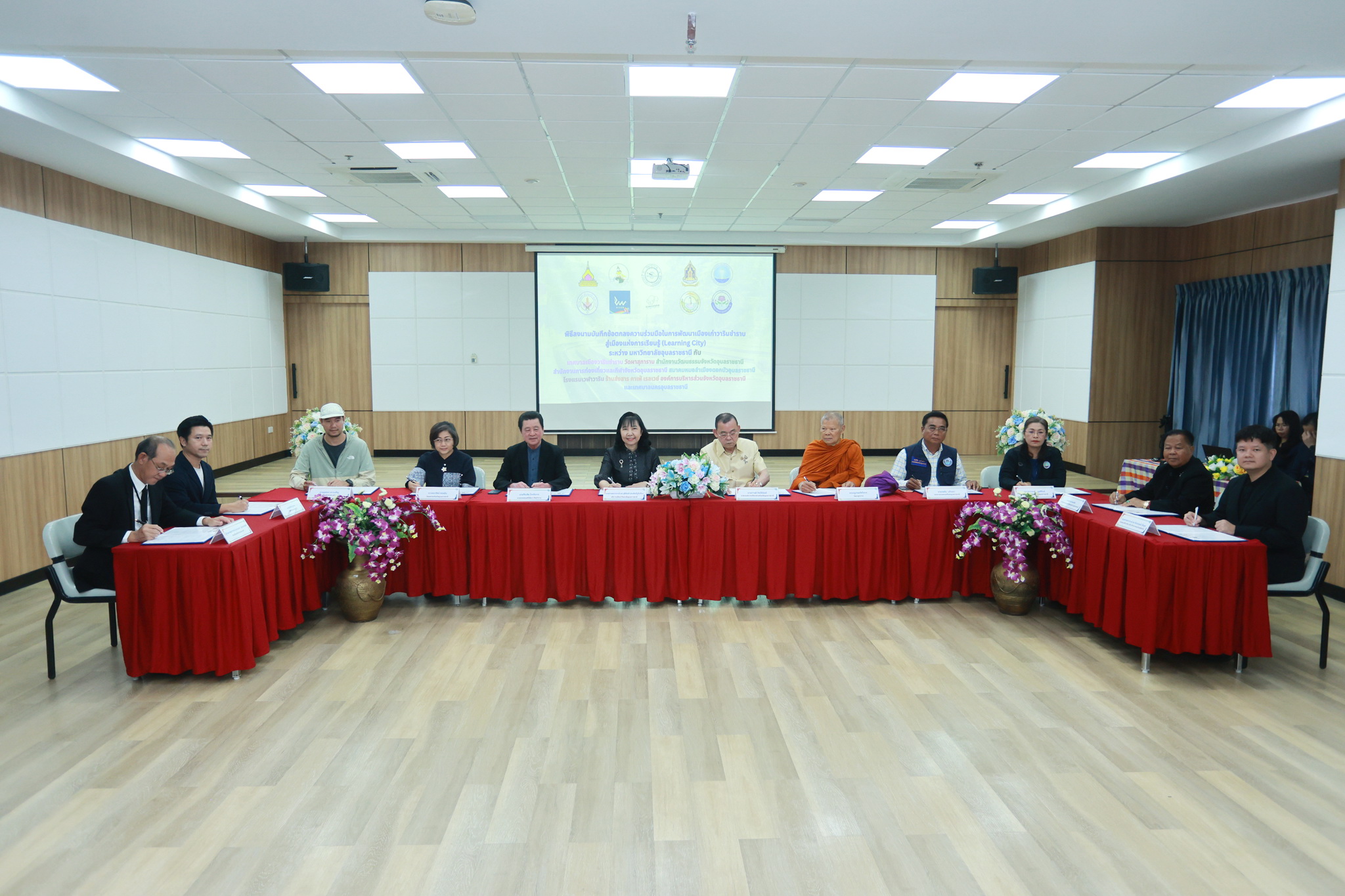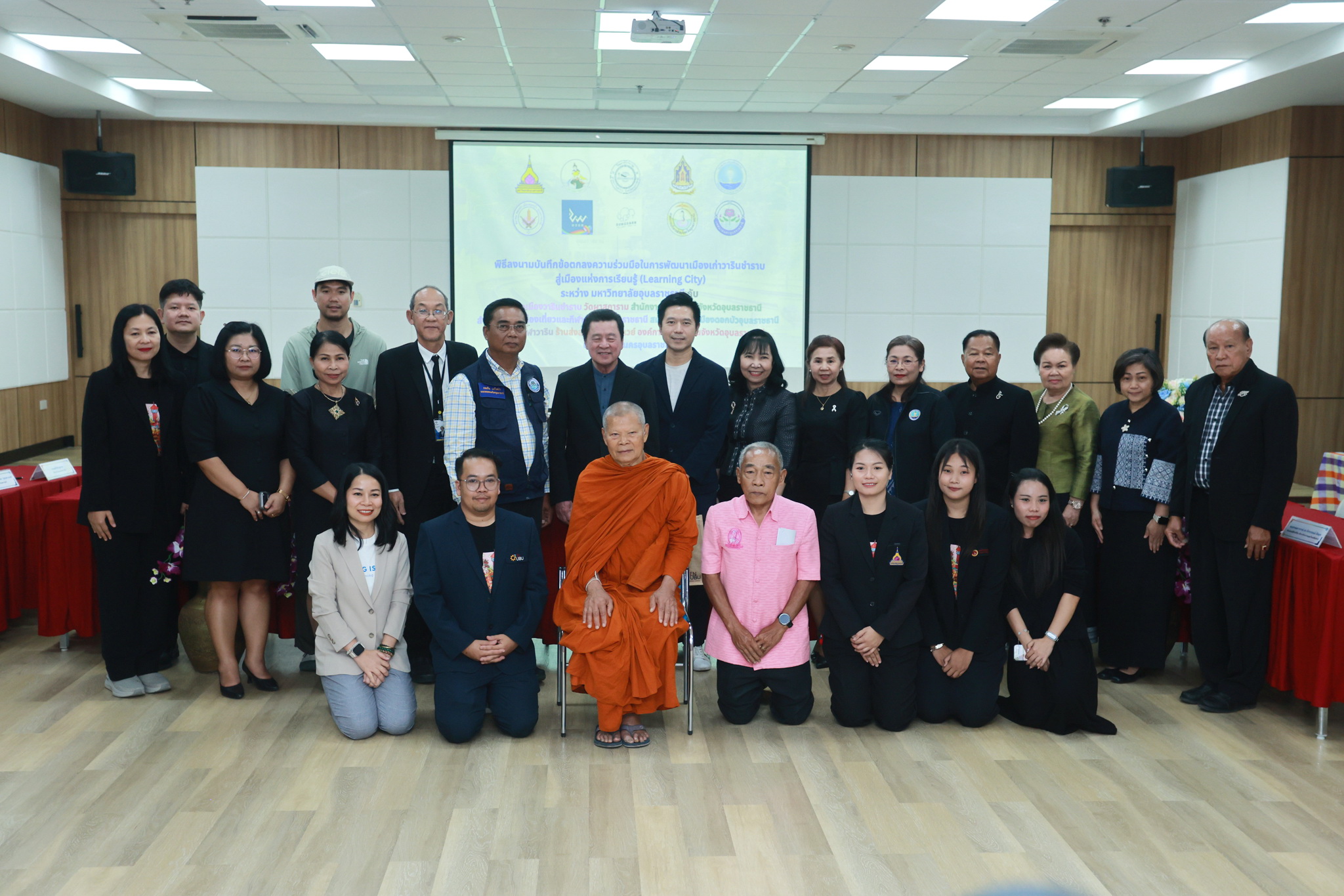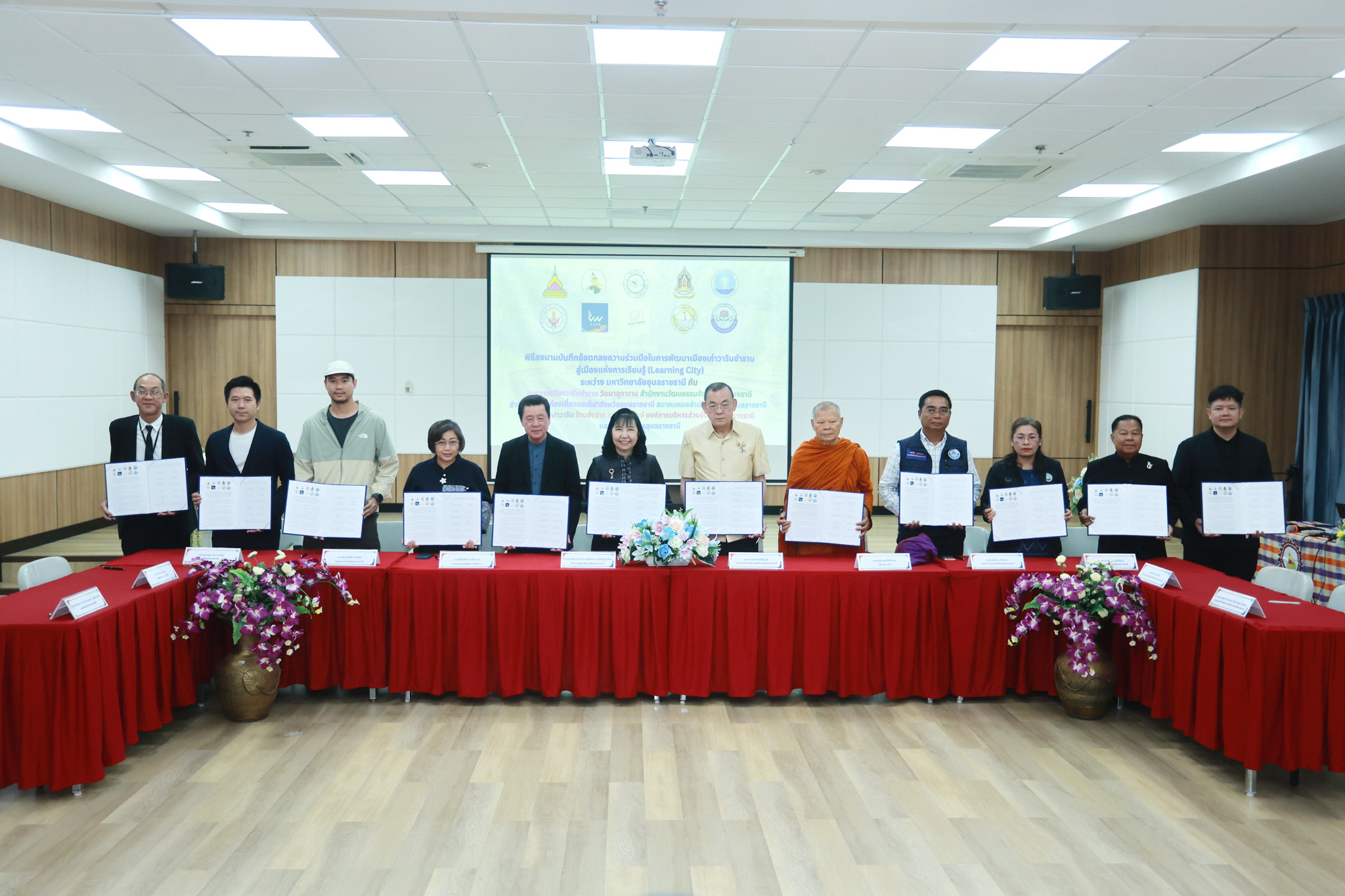 วันที่ 18 มีนาคม 2569 เวลา 13.00 น. ณ ห้องประชุม EN 6601 ชั้น 6 อาคาร EN 6 คณะวิศวกรรมศาสตร์ มหาวิทยาลัยอุบลราชธานี นายจีระชัย ไกรกังวาร นายกเทศมนตรี และหัวหน้าส่วนราชการ ร่วมพิธีลงนามความร่วมมือในการพัฒนาเมืองเก่าวารินชำราบสู่เมืองแห่งการเรียนรู้ (Learning City) กับหน่วยงานภาครัฐและเอกชน ดังนี้ คณะวิศวกรรมศาสตร์ มหาวิทยาลัยอุบลราชธานี องค์การบริหารส่วนจังหวัดอุบลราชธานี เทศบาลเมืองวารินชำราบ วัดผาสุการาม สำนักงานวัฒนธรรมจังหวัดอุบลราชธานี สำนักงานการท่องเที่ยวและกีฬาจังหวัดอุบลราชธานี สมาคมหมอลำเมืองดอกบัวอุบลราชธานี โรงแรมเวฬาวาริน และร้านส่งสารคาเฟ่เรลเวย์ เพื่อร่วมกันพัฒนาและยกระดับพื้นที่เมืองเก่าวารินชำราบให้เป็นนิเวศการเรียนรู้ที่ครบวงจรและมีความยั่งยืน โดยถ่ายทอดองค์ความรู้และนวัตกรรมจากมหาวิทยาลัยเป็นกลไกขับเคลื่อนการพัฒนา ส่งเสริมและบูรณาการงานวิจัยและเทคโนโลยีสมัยใหม่ ในการสร้างสรรค์รูปแบบการเรียนรู้ การถ่ายทอด และการเล่าเรื่องมรดกทางวัฒนธรรมและภูมิปัญญาท้องถิ่นให้เข้าถึงประชาชนทุกกลุ่ม สร้างและขยายเครือขายความร่วมมือทางวิชาการและการบริการวิชาการระหว่างภาครัฐ ภาคเอกชน และภาคประชาสังคมอย่างมีประสิทธิภาพและต่อเนื่อง พร้อมทั้งผลักดันและสนับสนุนการพัฒนาเมืองวารินชำราบให้ได้รับการรับรองจากองค์การยูเนสโก (UNESCO) ในฐานะเมืองแห่งการเรียนรู้