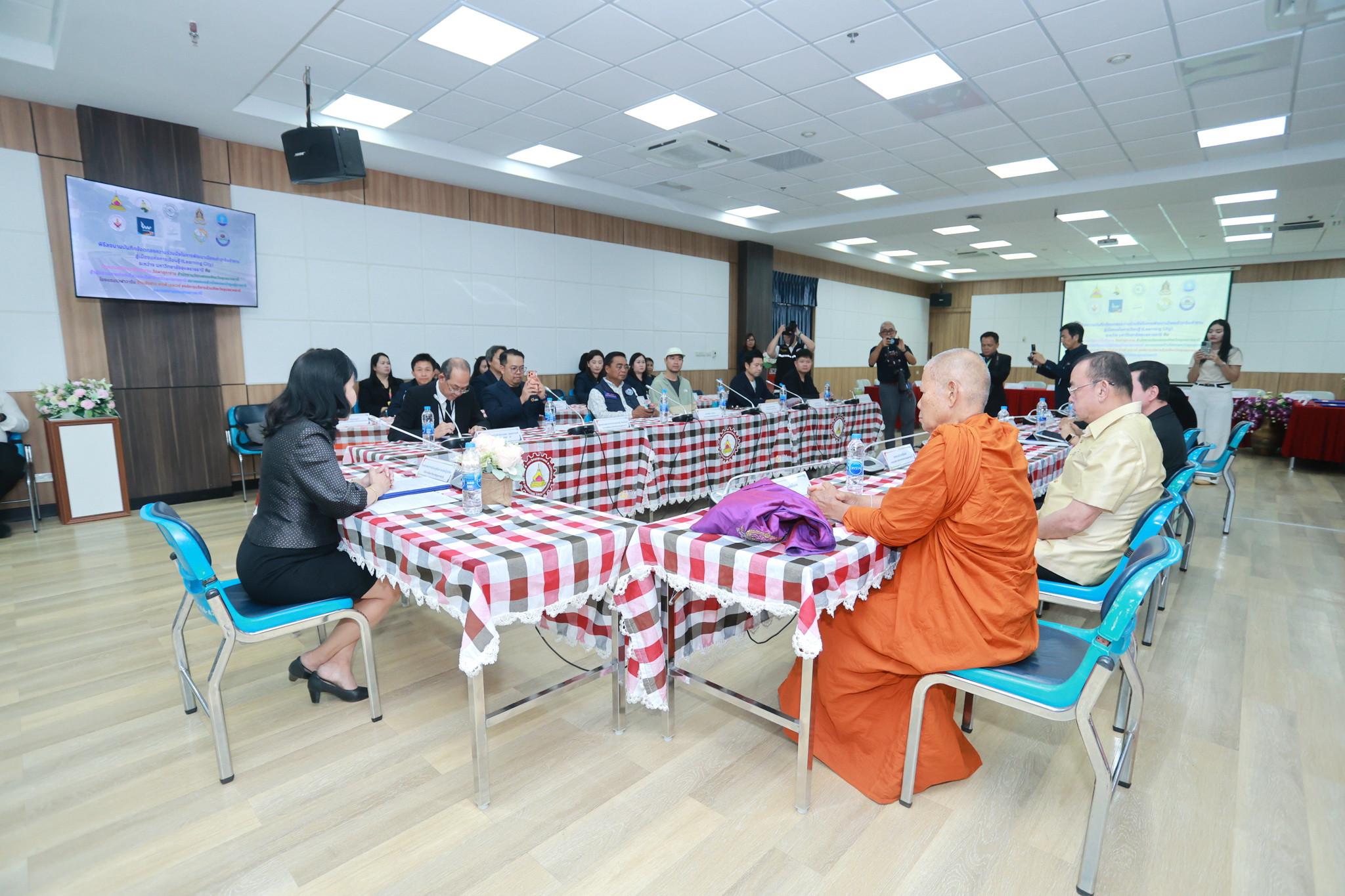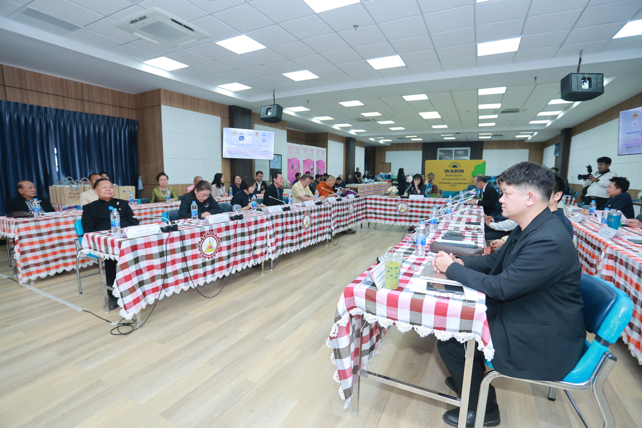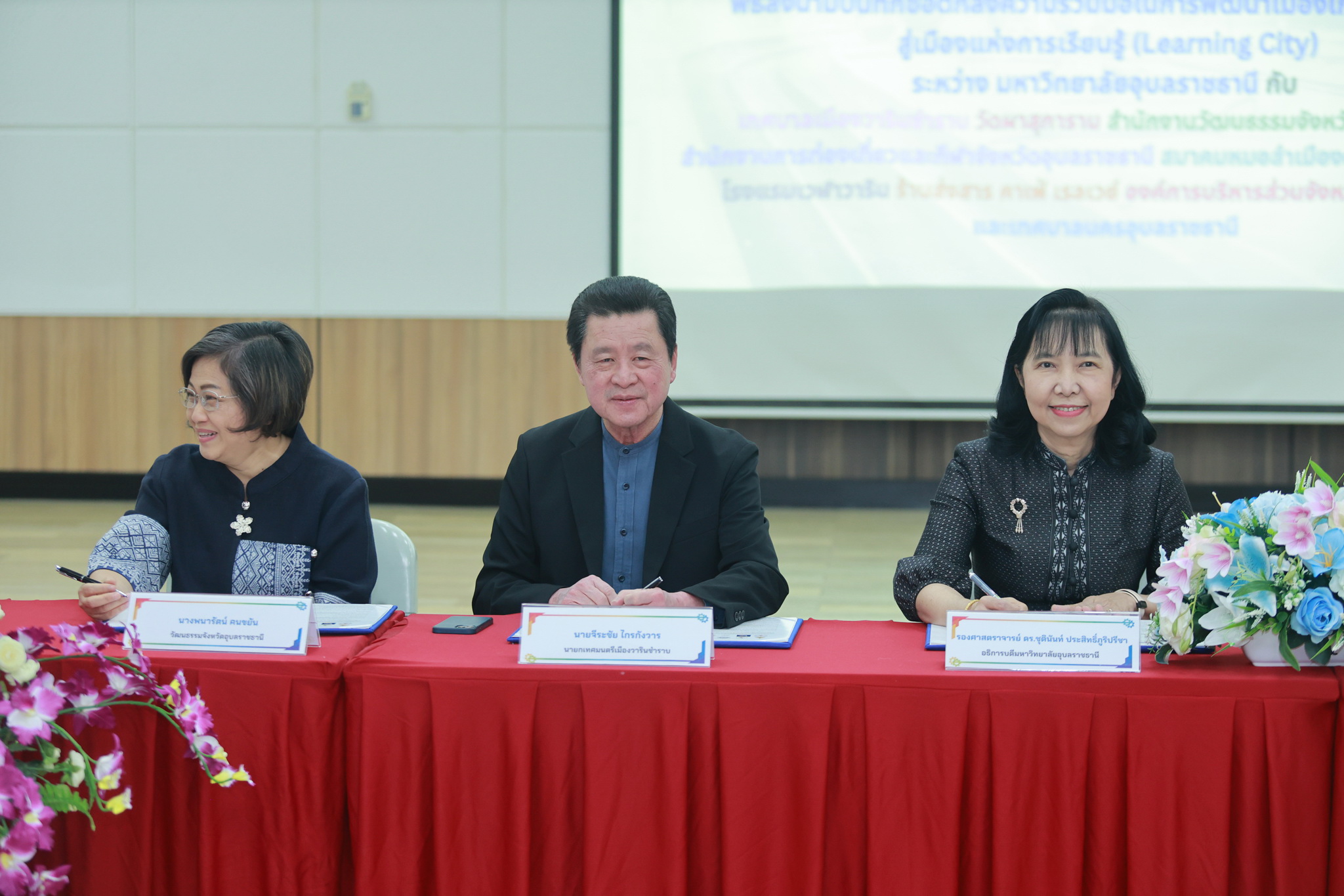 วันที่ 18 มีนาคม 2569 เวลา 13.00 น. ณ ห้องประชุม EN 6601 ชั้น 6 อาคาร EN 6 คณะวิศวกรรมศาสตร์ มหาวิทยาลัยอุบลราชธานี นายจีระชัย ไกรกังวาร นายกเทศมนตรี และหัวหน้าส่วนราชการ ร่วมพิธีลงนามความร่วมมือในการพัฒนาเมืองเก่าวารินชำราบสู่เมืองแห่งการเรียนรู้ (Learning City) กับหน่วยงานภาครัฐและเอกชน ดังนี้ คณะวิศวกรรมศาสตร์ มหาวิทยาลัยอุบลราชธานี องค์การบริหารส่วนจังหวัดอุบลราชธานี เทศบาลเมืองวารินชำราบ วัดผาสุการาม สำนักงานวัฒนธรรมจังหวัดอุบลราชธานี สำนักงานการท่องเที่ยวและกีฬาจังหวัดอุบลราชธานี สมาคมหมอลำเมืองดอกบัวอุบลราชธานี โรงแรมเวฬาวาริน และร้านส่งสารคาเฟ่เรลเวย์ เพื่อร่วมกันพัฒนาและยกระดับพื้นที่เมืองเก่าวารินชำราบให้เป็นนิเวศการเรียนรู้ที่ครบวงจรและมีความยั่งยืน โดยถ่ายทอดองค์ความรู้และนวัตกรรมจากมหาวิทยาลัยเป็นกลไกขับเคลื่อนการพัฒนา ส่งเสริมและบูรณาการงานวิจัยและเทคโนโลยีสมัยใหม่ ในการสร้างสรรค์รูปแบบการเรียนรู้ การถ่ายทอด และการเล่าเรื่องมรดกทางวัฒนธรรมและภูมิปัญญาท้องถิ่นให้เข้าถึงประชาชนทุกกลุ่ม สร้างและขยายเครือขายความร่วมมือทางวิชาการและการบริการวิชาการระหว่างภาครัฐ ภาคเอกชน และภาคประชาสังคมอย่างมีประสิทธิภาพและต่อเนื่อง พร้อมทั้งผลักดันและสนับสนุนการพัฒนาเมืองวารินชำราบให้ได้รับการรับรองจากองค์การยูเนสโก (UNESCO) ในฐานะเมืองแห่งการเรียนรู้