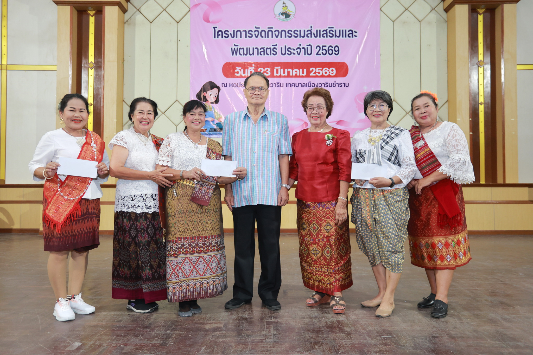 วันที่ 23 มีนาคม 2569 เวลา 09.00 น. ณ หอประชุมประชาวาริน กองสวัสดิการสังคม เทศบาลเมืองวารินชำราบได้จัดกิจกรรมเนื่องในวันสตรีสากล ประจำปี พ.ศ.2569 เพื่อเป็นการรำลึกและเชิดชูเกียรติสตรี และผู้ทำงานด้านสตรีในเขตเทศบาลเมืองวารินชำราบ รวมถึงกระตุ้นให้สังคม ชุมชน และบุคคลได้ตระหนักถึงสิทธิมนุษยชนของสตรี โดยในพิธีเปิดได้รับเกียรติจากนายจีระชัย ไกรกังวาร นายกเทศมนตรี เป็นประธานในพิธี พร้อมด้วย รองนายกเทศมนตรี,สมาชิกสภาเทศบาล และหัวหน้าส่วนราชการ ร่วมเป็นเกียรติ สำหรับกิจกรรมภายในงานมีการแสดงการเต้นจากกลุ่มสตรีภายในชุมชน และได้รับเกียรติจากนางรุ่งนภา ทับหนองฮี รองปลัดเทศบาล รักษาราชการแทนปลัดเทศบาล มาเป็นวิทยากรให้ความรู้ และการแข่งขันชิงแชมป์สุดยอดขนมขนมจีนน้ำยา, ห่อหมก, ยำ และของหวาน สร้างความสนุกสนานครื้นเครงให้แก่ผู้เข้าร่วมกิจกรรมเป็นอย่างมาก