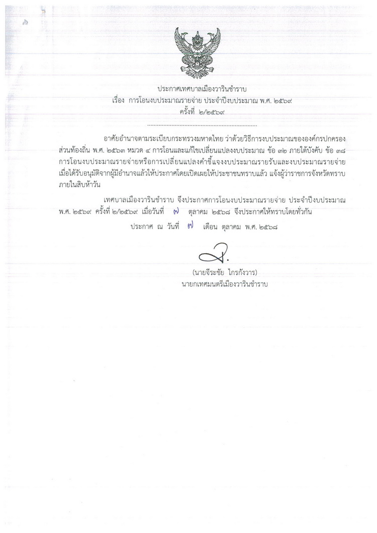การโอนงบประมาณรายจ่าย ประจำปีงบประมาณ พ.ศ.2569 ครั้งที่ 2/2569