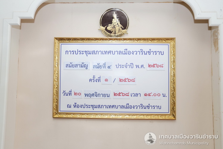 ระเบียบวาระการประชุมสภาเทศบาลเมืองวารินชำราบ สมัยสามัญ สมัยที่ 4 ประจำปี 2568 ครั้งที่ 1/2568