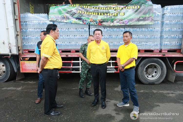 วันที่ 25 กรกฎาคม 2568 เวลา 14.00 น. สมาคมสันนิบาตเทศบาลจังหวัดอุบลราชธานี โดยมีนายจีระชัย ไกรกังวาร นายกเทศมนตรีเมืองวารินชำราบ ในฐานะประธานสันนิบาต เทศบาลจังหวัดอุบลราชธานี พร้อมด้วยนายสมาน ทวีศรี นายกเทศมนตรีตำบลห้วยเรือ และหัวหน้าส่วนราชการมอบน้ำดื่ม จำนวน 2,222 แพ็ค เพื่อสนับสนุนการปฏิบัติหน้าที่ของเจ้าหน้าที่ทหาร และช่วยบรรเทาความเดือดร้อนของพี่น้องประชาชนที่ได้รับผลกระทบจากสถานการณ์ชายแดน ณ กองพันทหารราบที่ 2 กรมทหารราบที่ 6