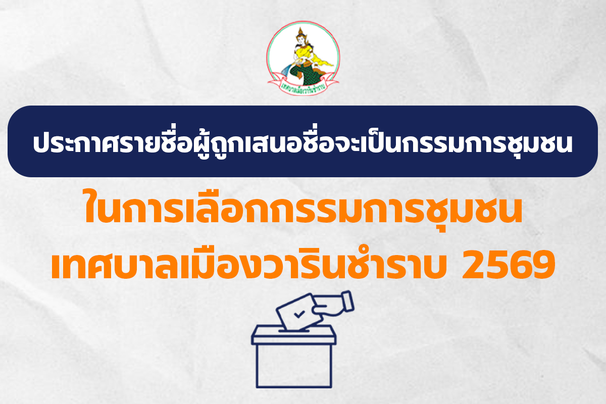 หน้าหลัก   ประชาสัมพันธ์ ประกาศรายชื่อผู้ถูกเสนอชื่อจะเป็นกรรมการชุมชน ในการเลือกกรรมการชุมชนเทศบาลเมืองวารินชำราบ ปี 2569