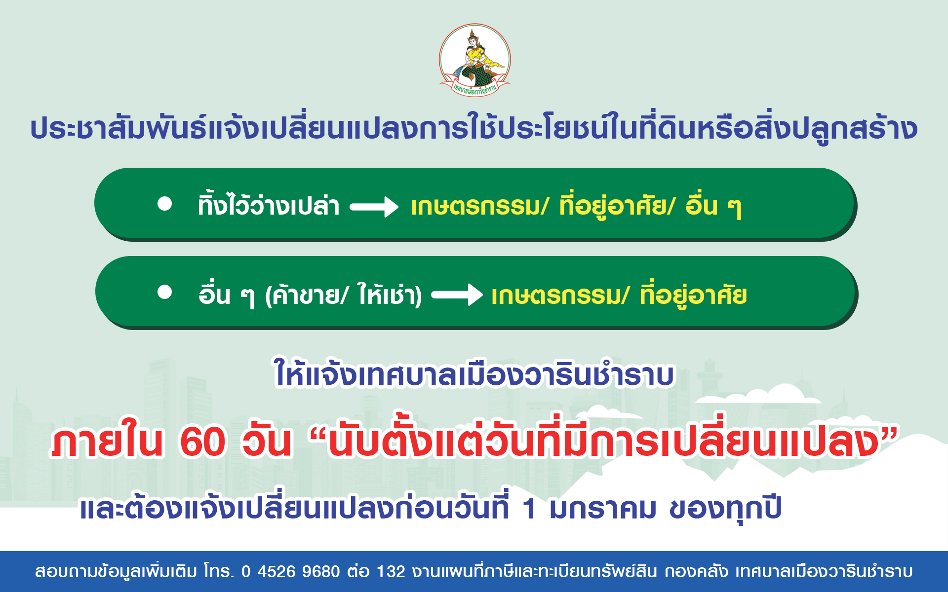 งานแผนที่และทะเบียนทรัพย์สิน กองคลัง ชั้น 1 สำนักงานเทศบาลเมืองวารินชำราบ
