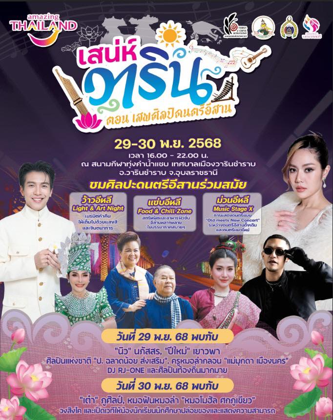 ขอเชิญร่วมงาน เสน่ห์วาริน ตอน เสพศิลป์ถิ่นอีสาน 29-30 พฤศจิกายน 2568