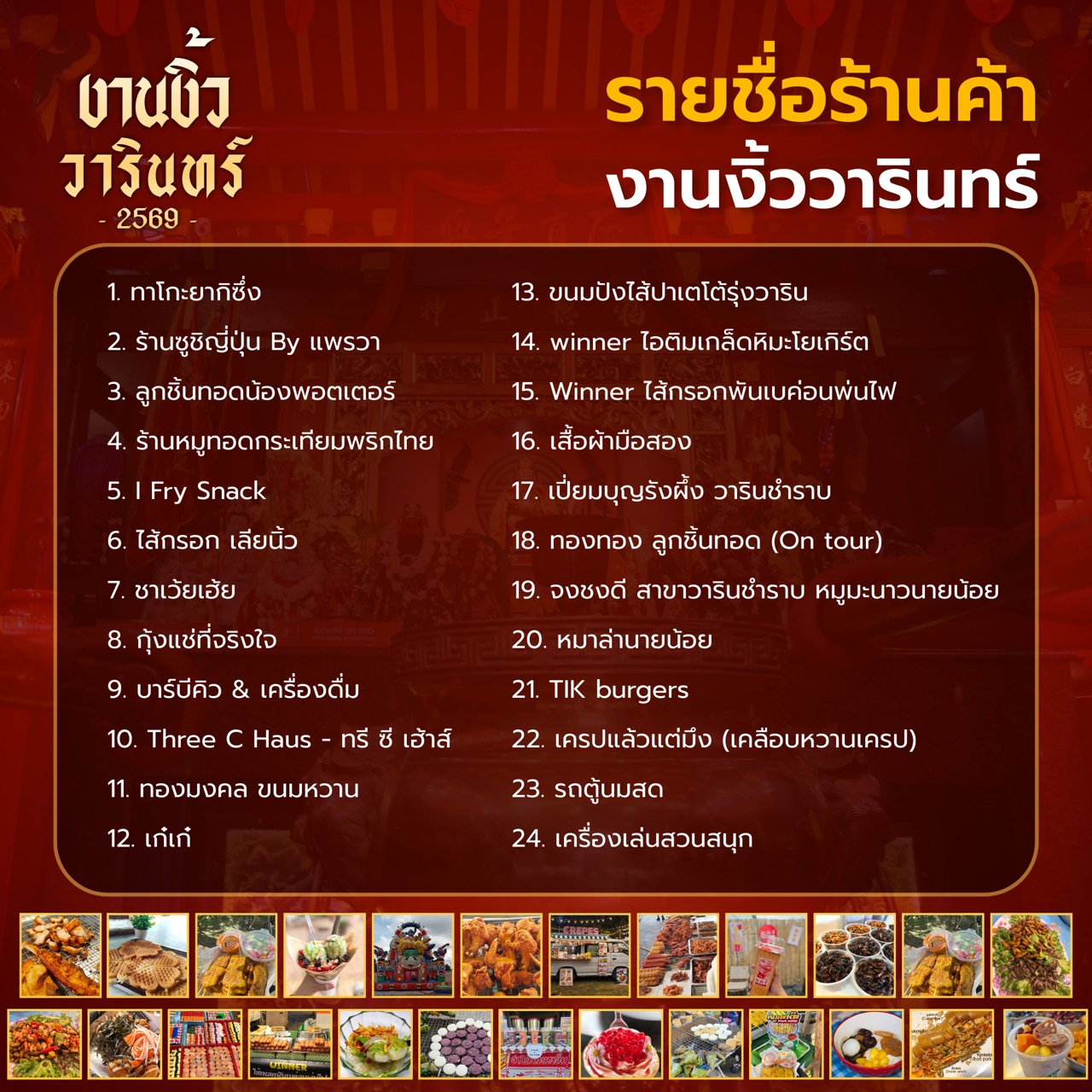 หน้าหลัก   ประชาสัมพันธ์ ขอเชิญเที่ยวงาน “งานงิ้ววารินทร์ ประจำปี 2569” ระหว่างวันที่ 9 - 13 มีนาคม 2569