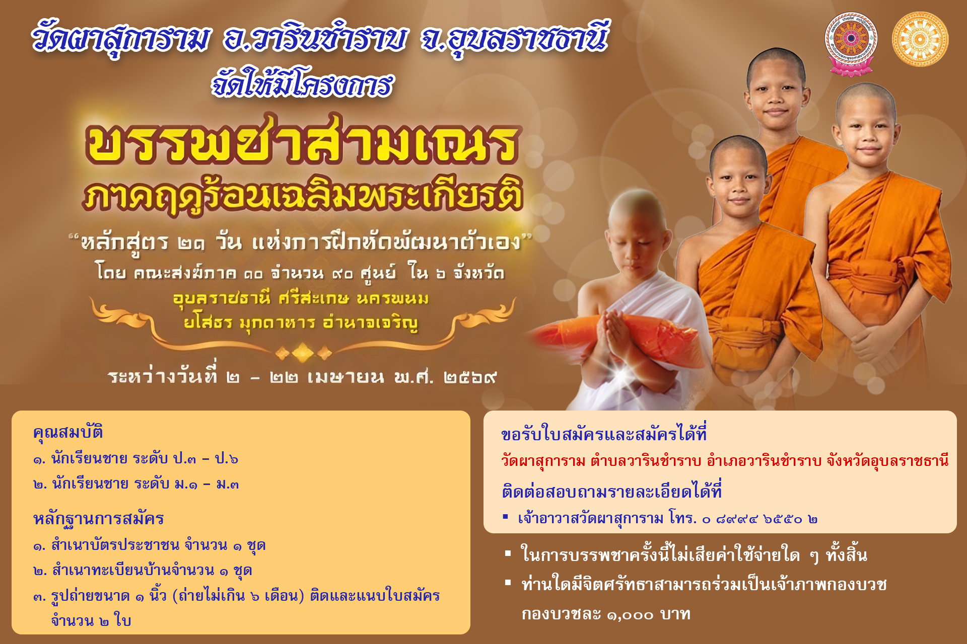 หน้าหลัก   ประชาสัมพันธ์ ขอเชิญผู้ปกครองนำบุตรหลานร่วมสมัครโครงการบรรพชาสามเณรภาคฤดูร้อนเฉลิมพระเกียรติ ประจำปี 2569