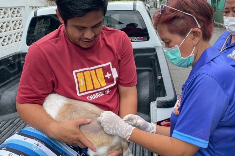 เทศบาลเมืองวารินชำราบ ออกหน่วยบริการฝึกปฏิบัติการฉีดวัคซีนป้องกันโรคพิษสุนัขบ้าและสำรวจประชากรสัตว์เลี้ยง ประจำปีงบประมาณ 2568 ภายในชุมชนแหลมทอง